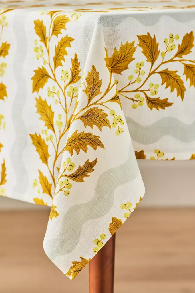 Host a stylish gathering with this botanical-printed tablecloth crafted from 100% cotton.