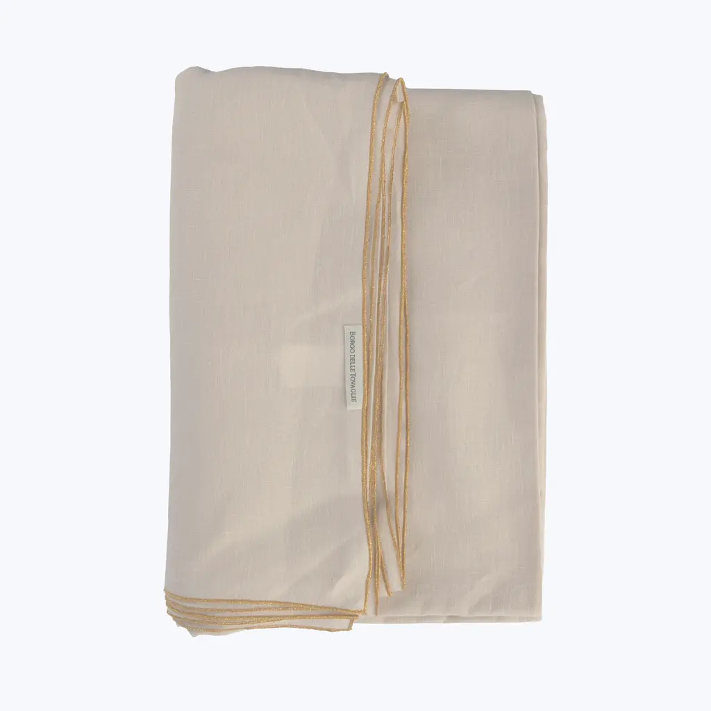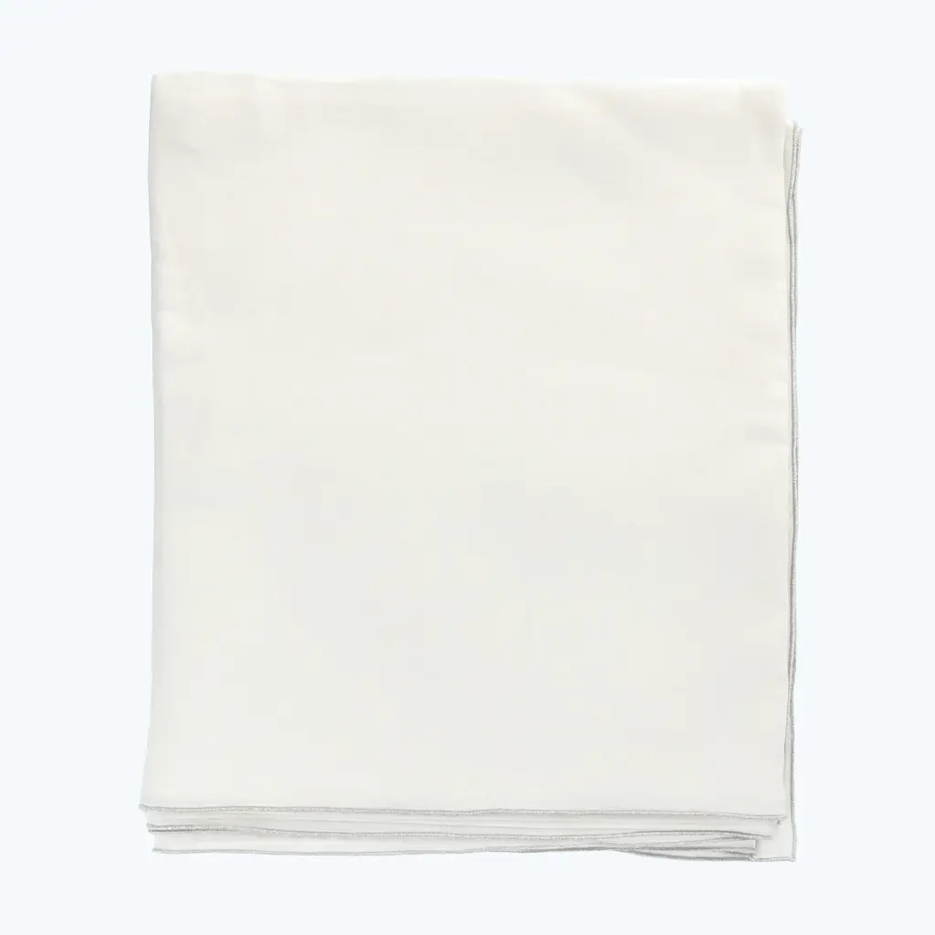Traditional craftsmanship meets modern sensibility in this assortment of Metallic Linen Tablecloths. Linen fibers are woven into soft yet durable cloth tablecloths with effortless elegance. Finished with a lurex metallic trim. Available exclusively at abc. Pair with the Metallic Linen Napkin and Metallic Linen Placemat for the complete table setting.