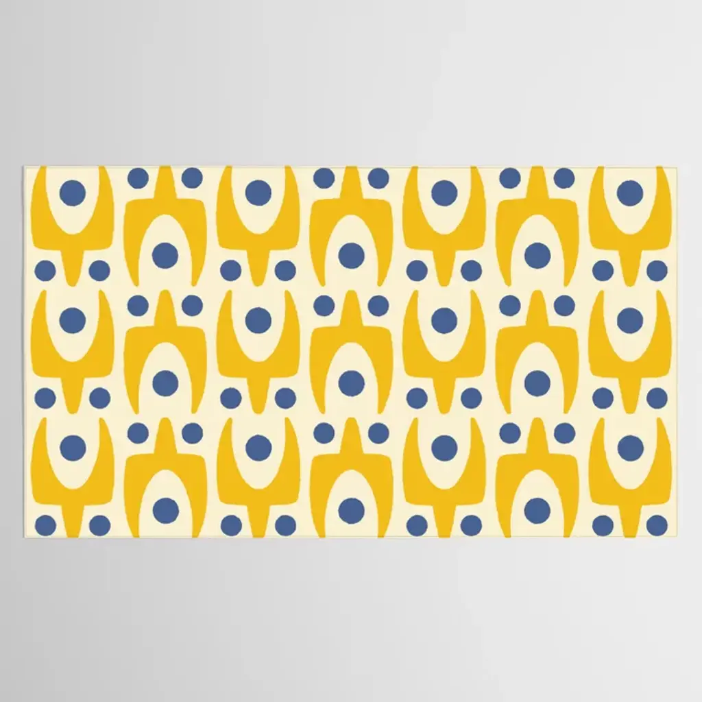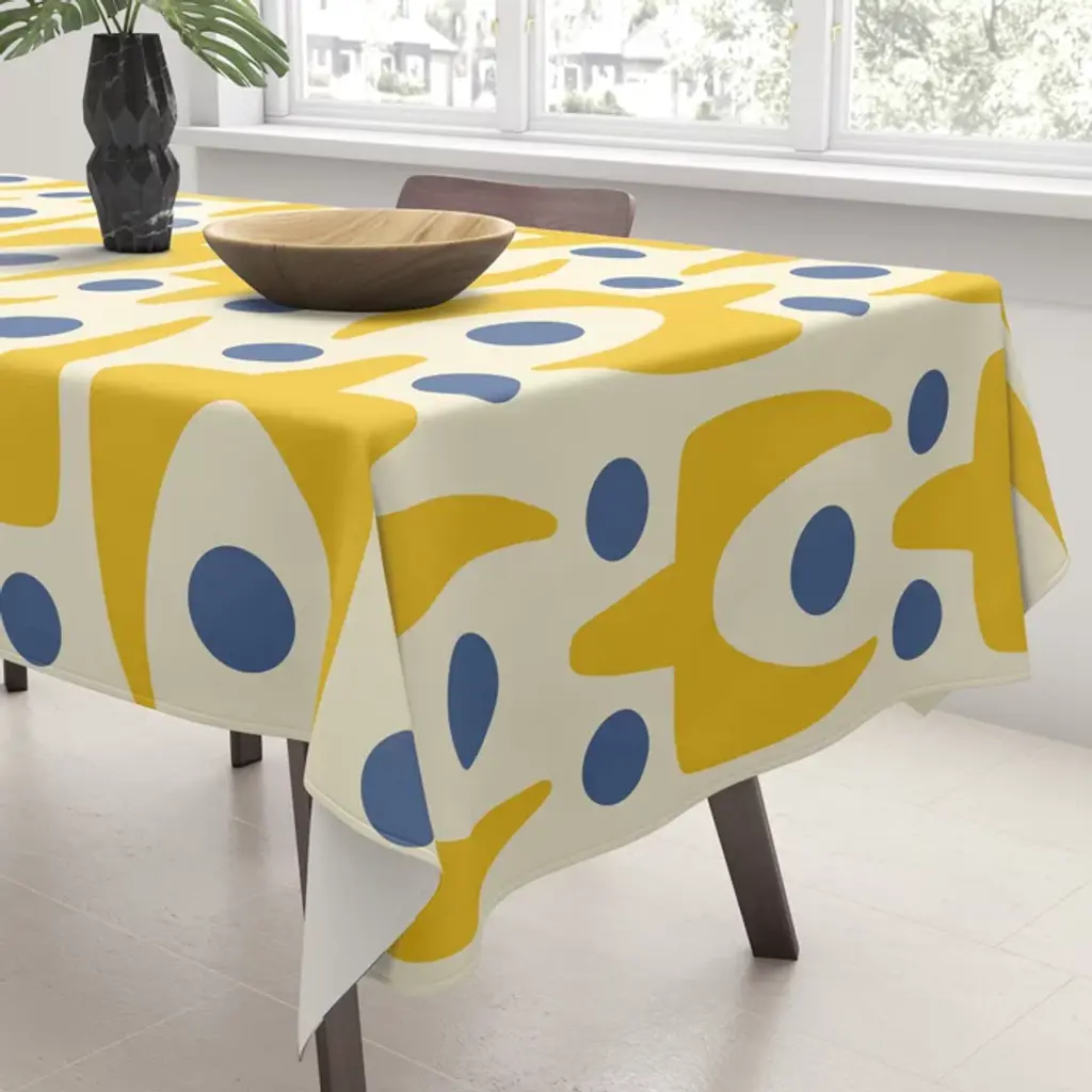 Mid Century Modern Abstract Pattern 641 Googie Yellow And Blue Tablecloth
