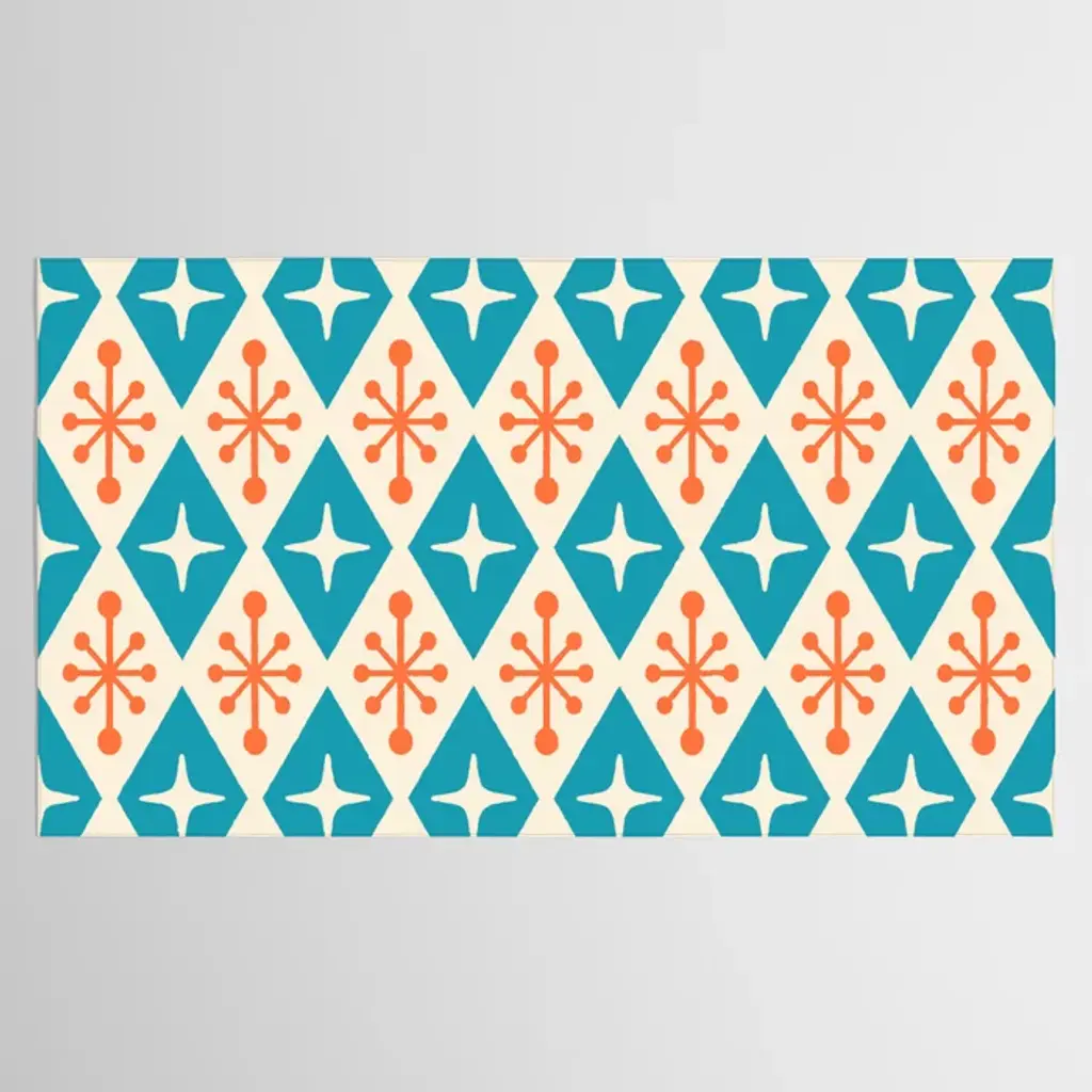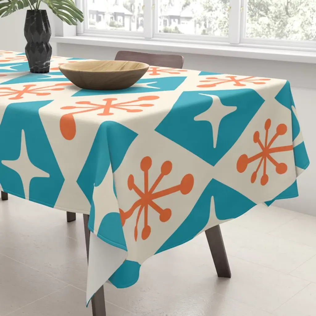 Mid Century Modern Atomic Age Googie Pattern 107 Turquoise And Orange Tablecloth