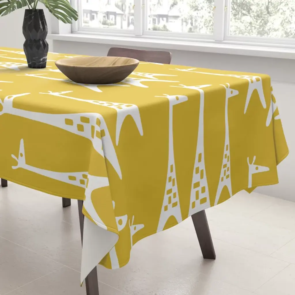 Mid Century Modern Giraffe Pattern 221 Mustard Yellow Tablecloth