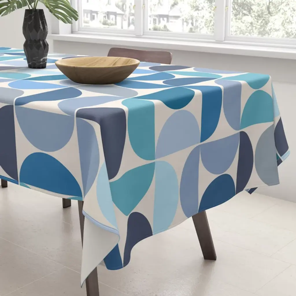 Mid Century Modern Pattern Blue Tablecloth