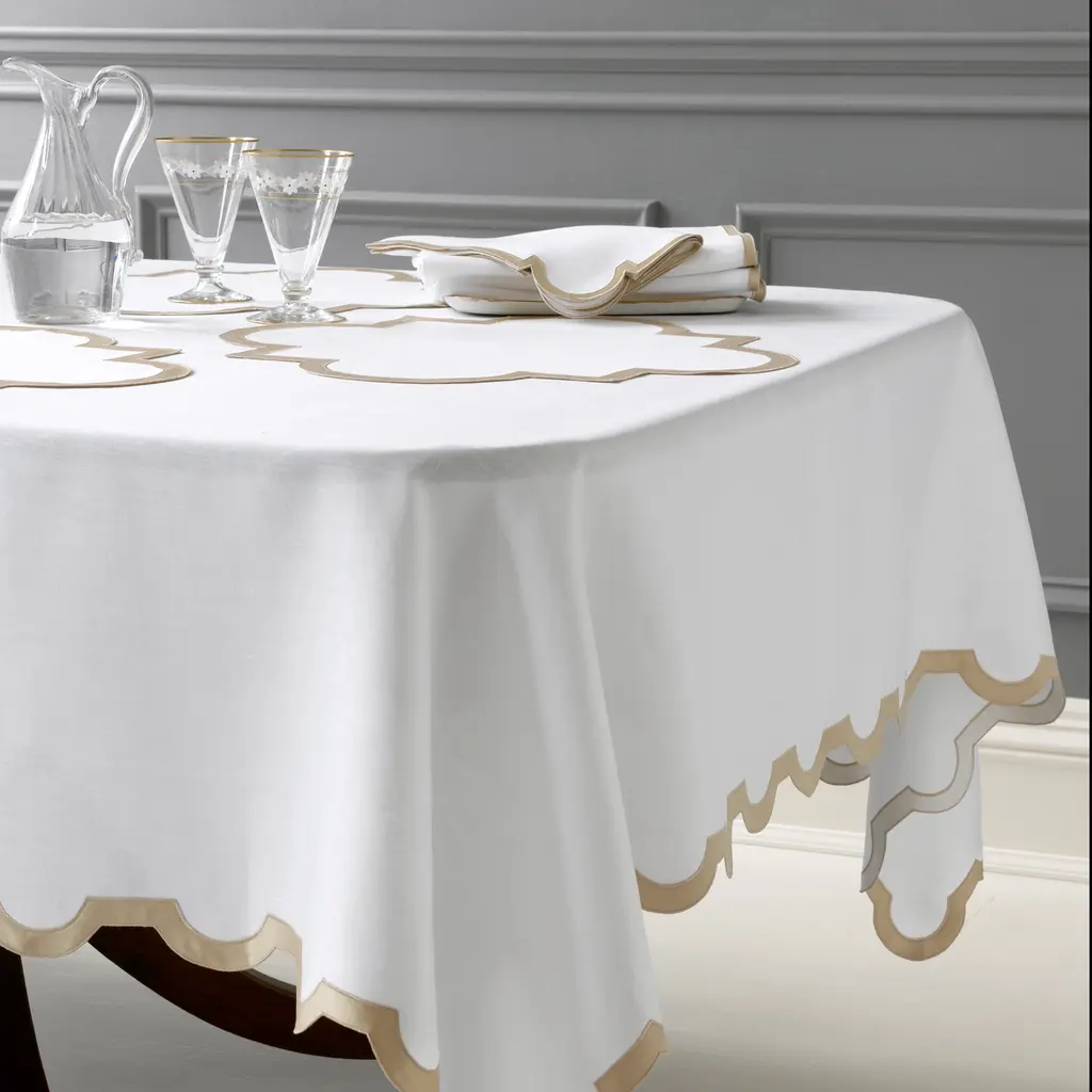 Inspired by walking on Worth Avenue in Palm Beach, Matouk's Mirasol table linens features the arch trim of shop awnings making the set a must-have for all occasions.