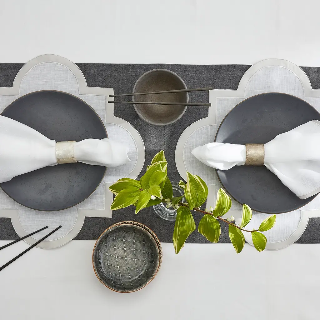 Inspired by walking on Worth Avenue in Palm Beach, Matouk's Mirasol table linens features the arch trim of shop awnings making the set a must-have for all occasions.