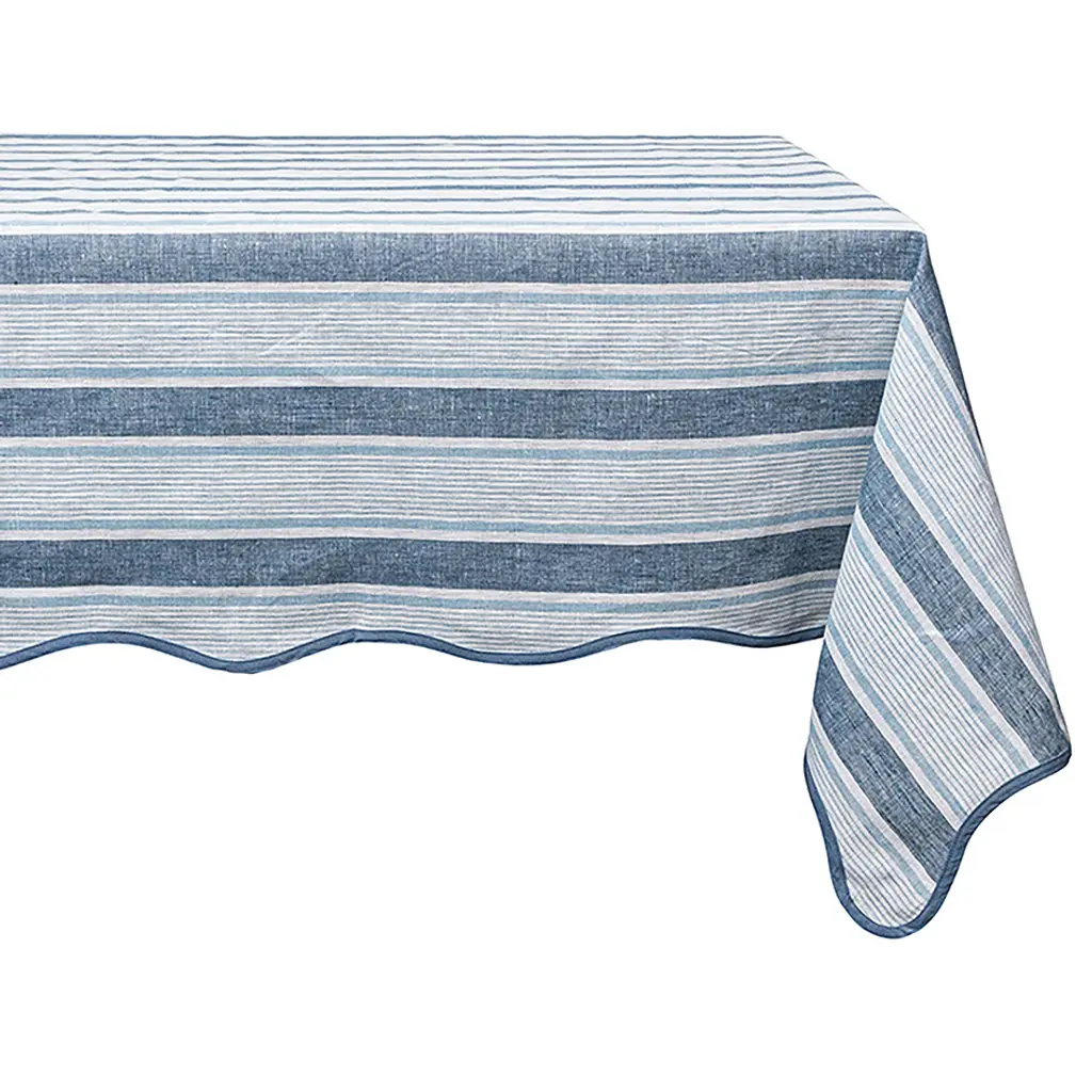 Nautical Blue French Stripe Tablecloth - 84" X 60"