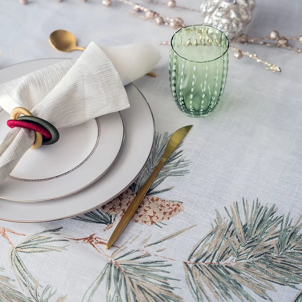 Newbury Tablecloth, White And Beige
