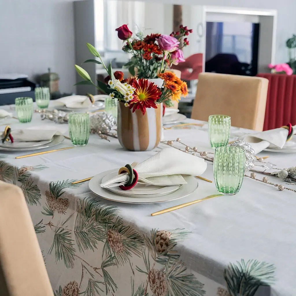 Newbury Tablecloth, White And Beige