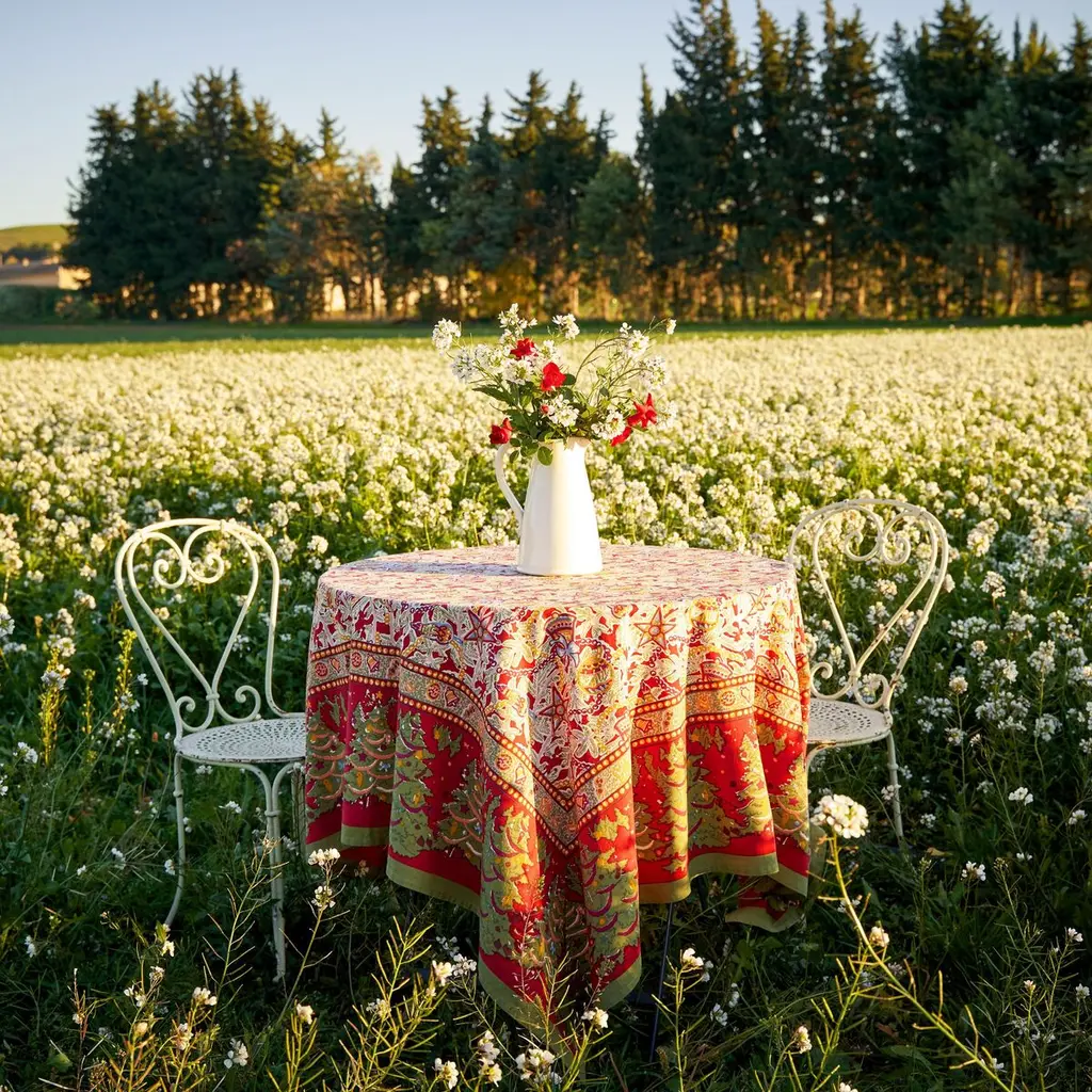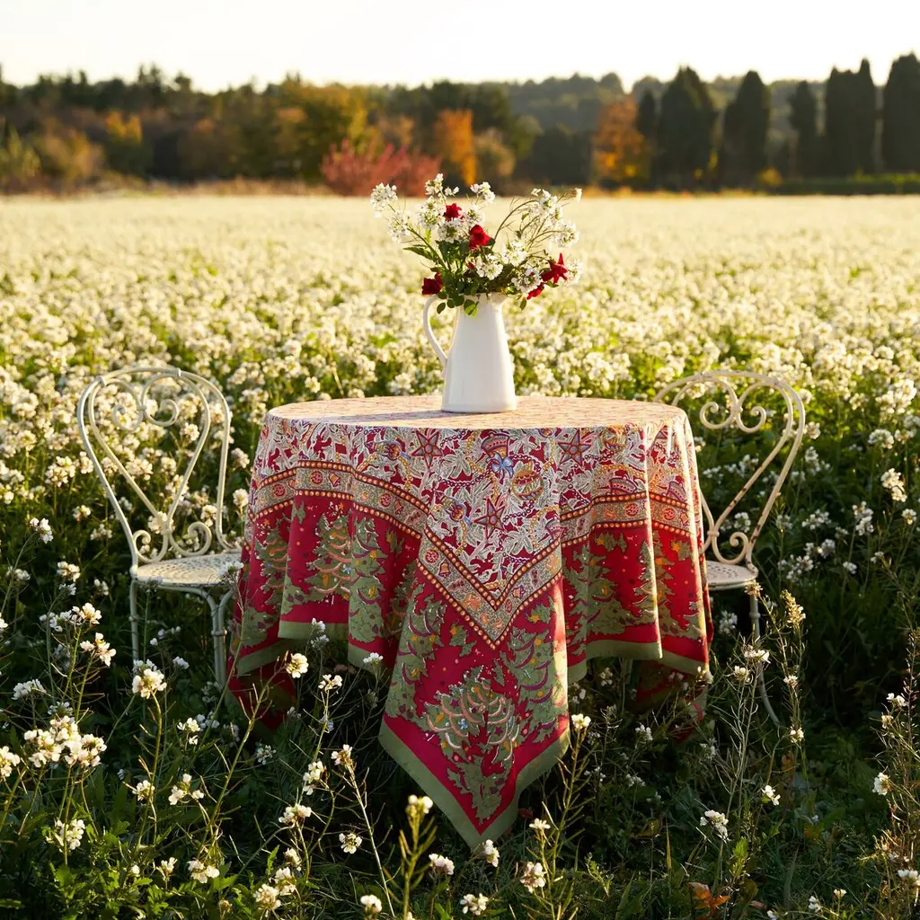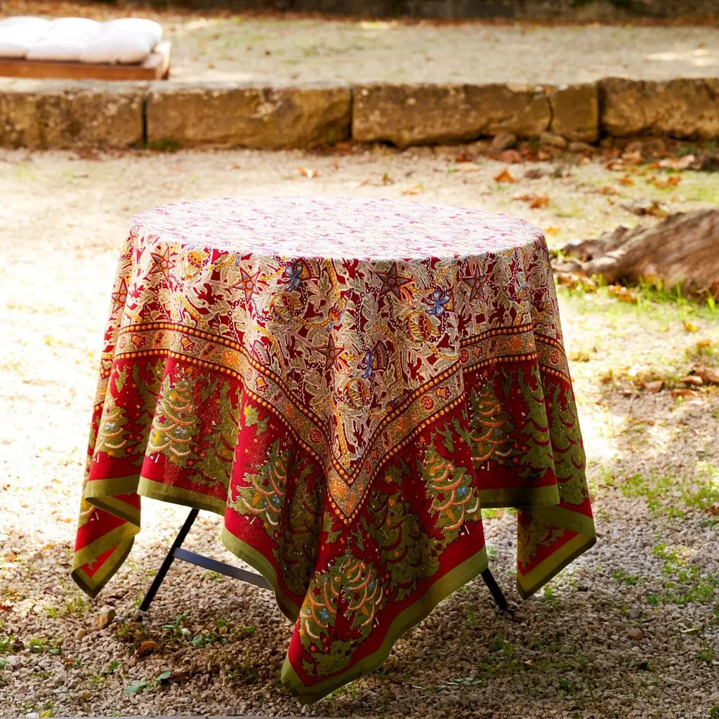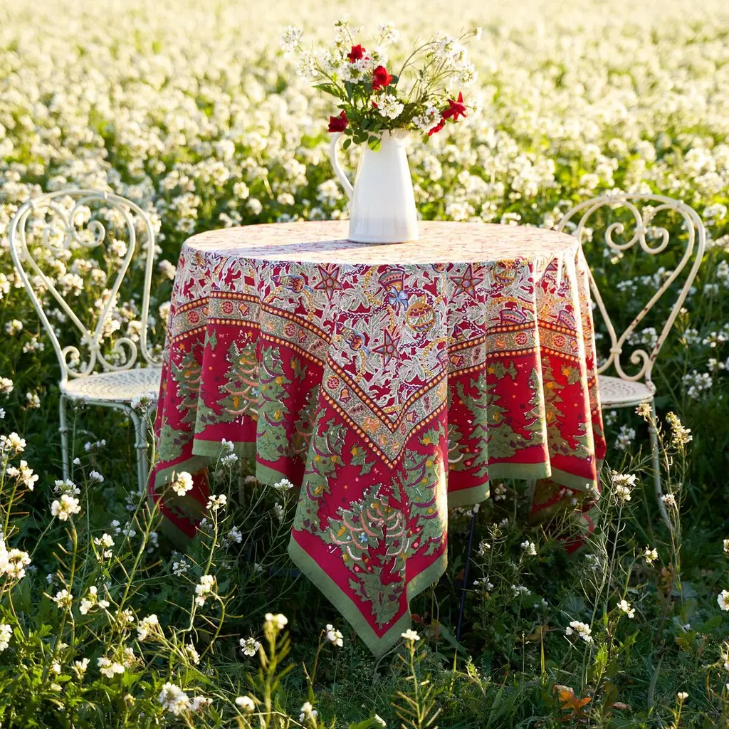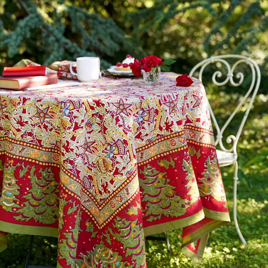 Casual festivity and tradition are balanced in an elegant feast for the eyes. Featuring an array of finely detailed Christmas decorations, the Noel Collection is perfectly suited for the holidays. Fine French table linens, hand-printed.