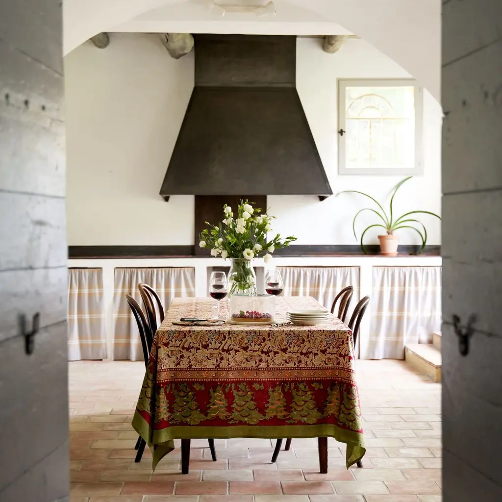Casual festivity and tradition are balanced in an elegant feast for the eyes. Featuring an array of finely detailed Christmas decorations, the Noel Collection is perfectly suited for the holidays. Fine French table linens, hand-printed.