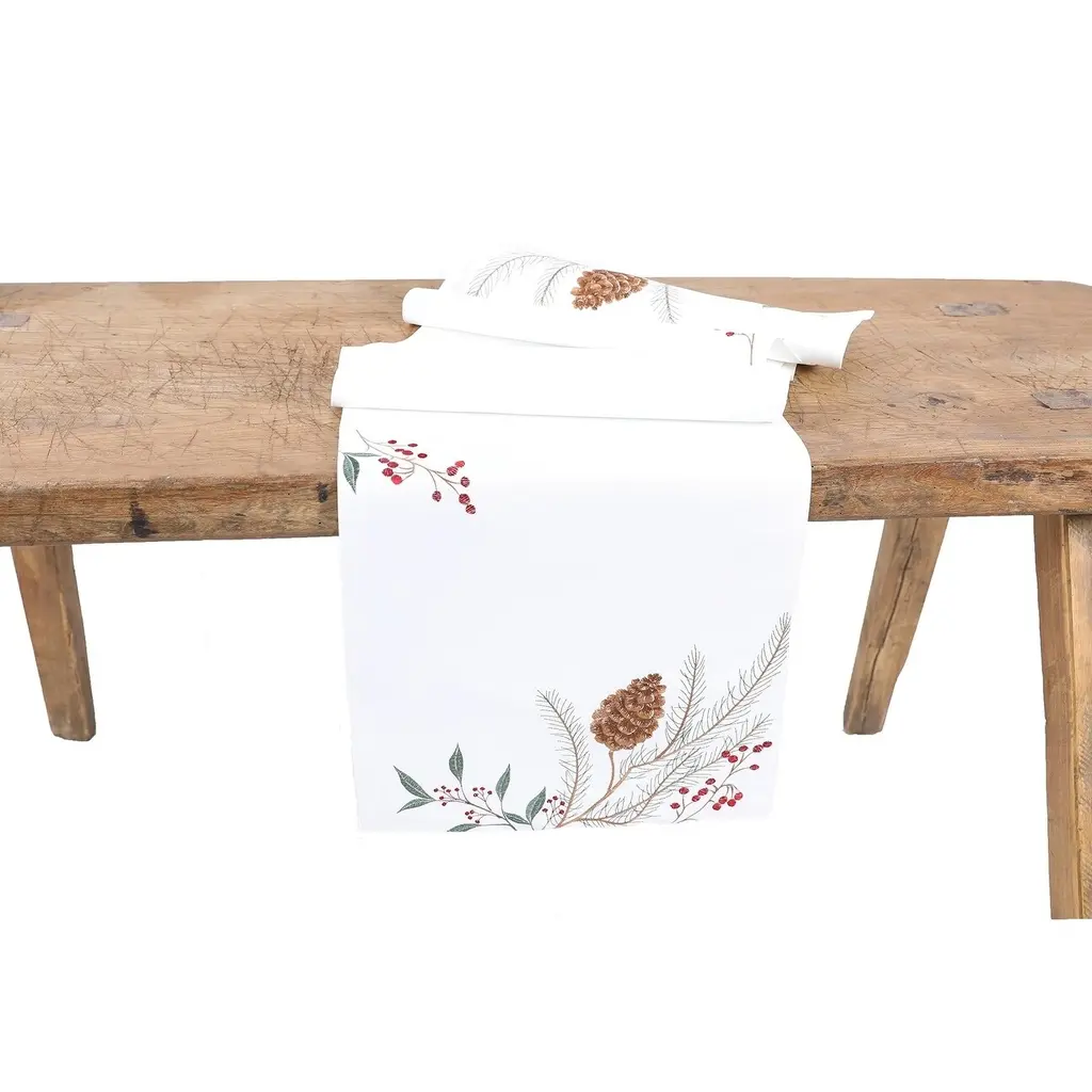 Elevate your dining experience with our Nomad Harvest Block print artisanal style tablecloth. Designed to bring a touch of casual elegance to your Fall or everyday table setting, this versatile tablecloth has been crafted with meticulous attention to detail and features a paisley block print design in shades of red and olive green on a solid beige ground, complimented by an ornate border design. Crafted from 100% polyester, this tablecloth combines softness and durability, ensuring it lasts for years to come. Sold as a single tablecloth, available in several sizes. Complete the look by adding our coordinating Nomad Harvest Block Print napkins, table runner, and placemats to your collection, available separately.