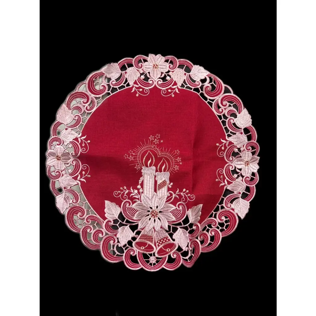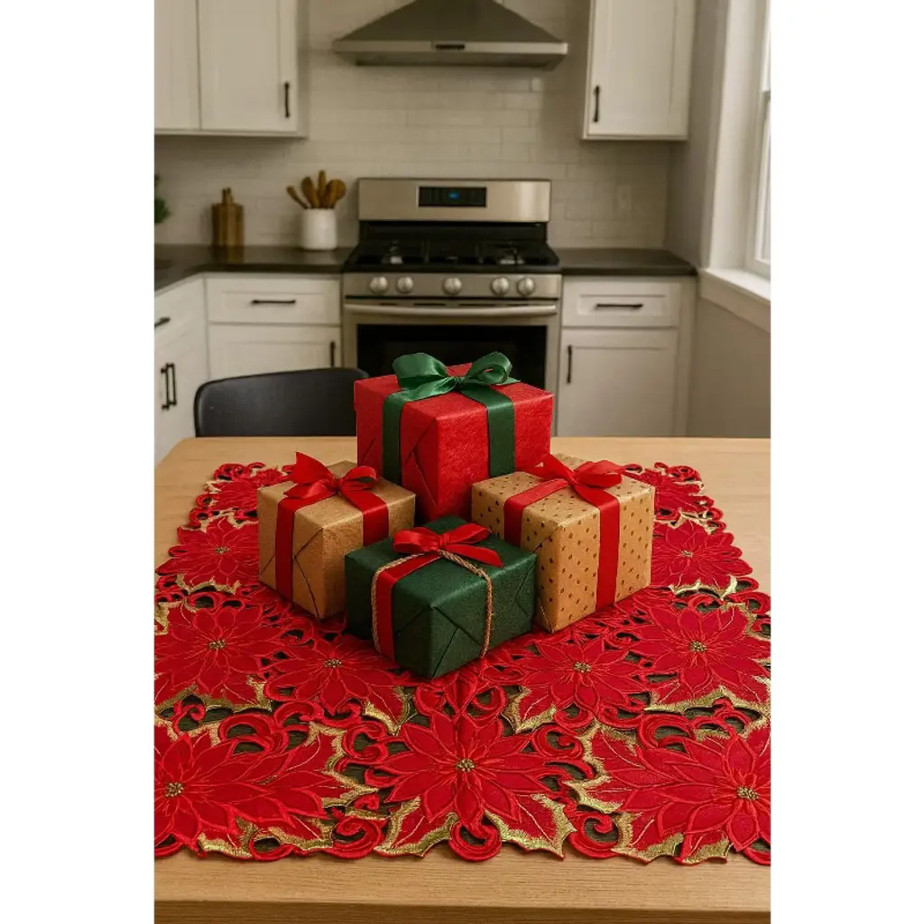 Poinsettia Embroidered Cutwork Square Tablecloth, 36 Inch Square
