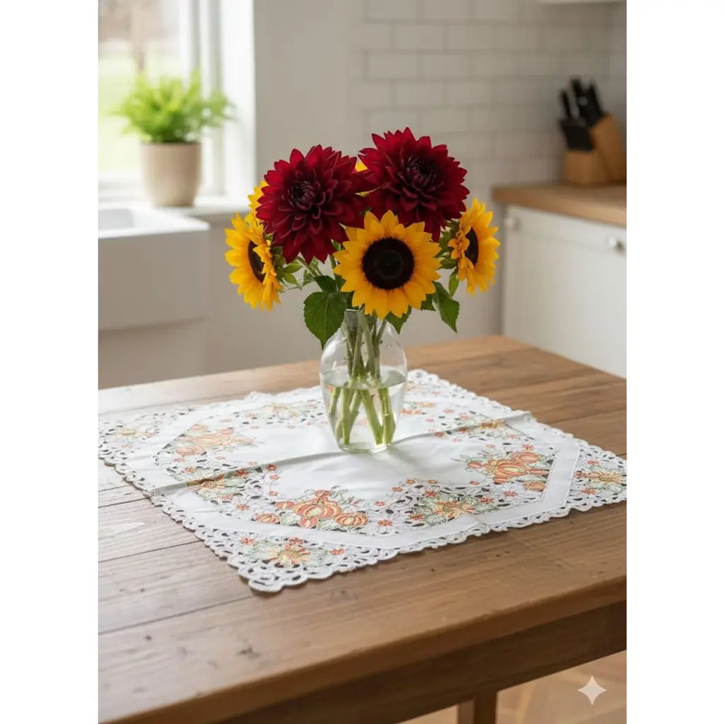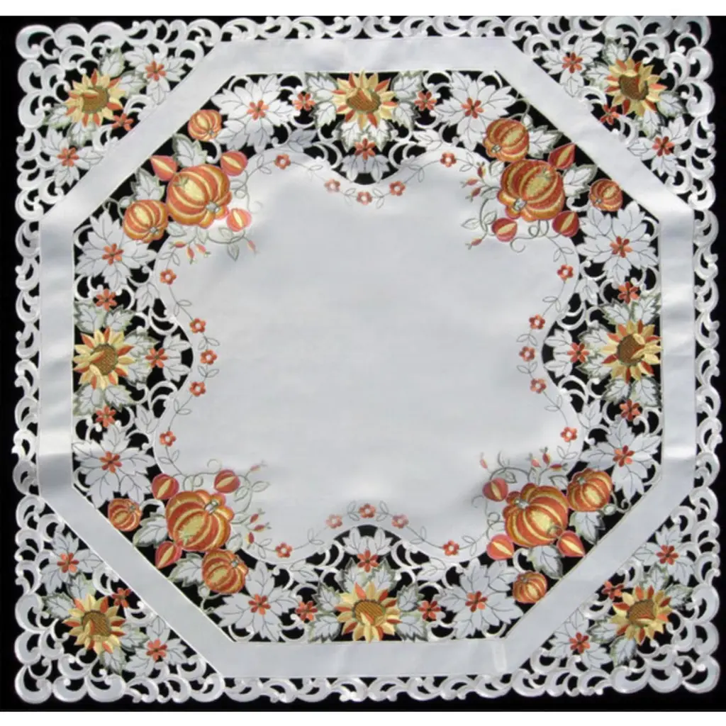 Pumpkin Embroidered Cutwork Square Tablecloth, 36 Inch Square