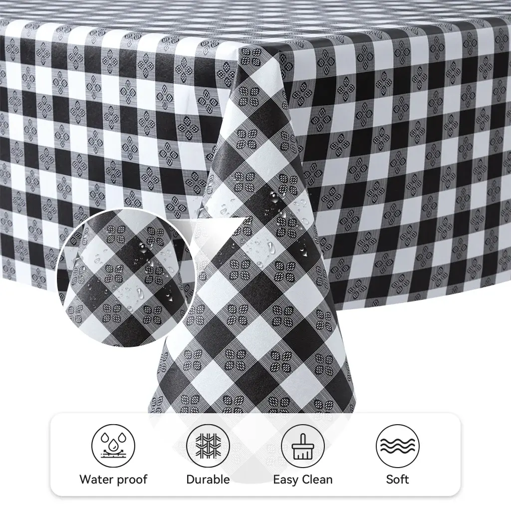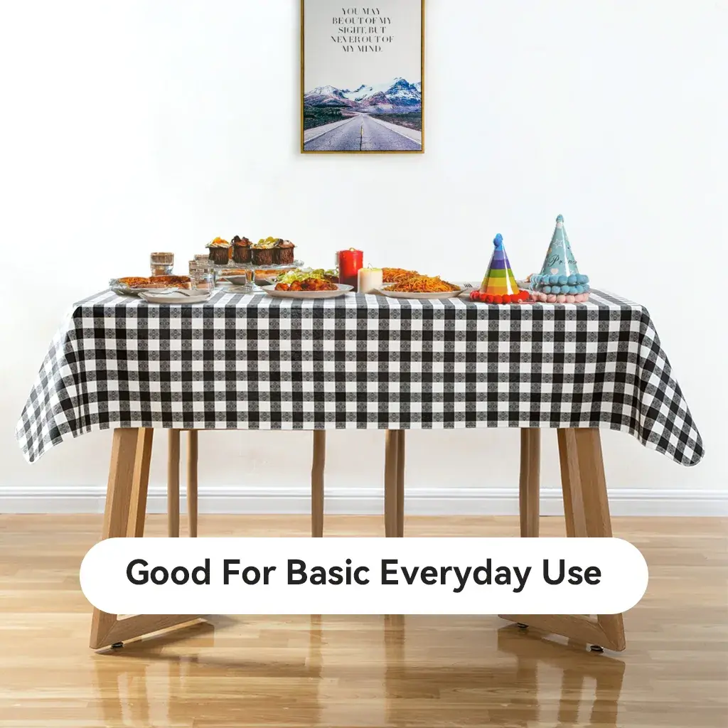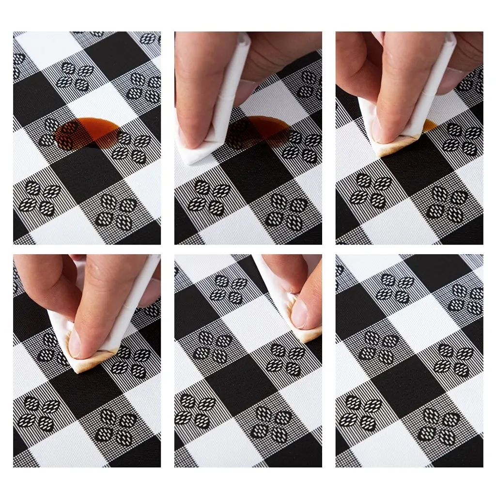 Ray Star tablecloth is made with high-quality material that ensures long-lasting usage and is lined on the bottom with soft flannel backing to protect the table surface. It is 100% waterproof, stain-proof, and easy to clean and install. Offering two sizes of medium and large, this tablecloth is the perfect addition to elevate the look of any space.Features:• Modern farmhouse gingham design elevates the look of your dining tablescape • Flannel backing can improve slip resistance and softly protect the table surface• Water-proof, oil-resistant, and easy to clean• Material: • Weight: 1.07 lb, 1.09 lb• Dimensions: 52 inches x 90 inches, 60 inches x 84 inches