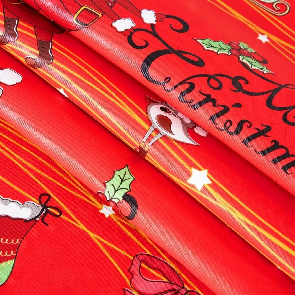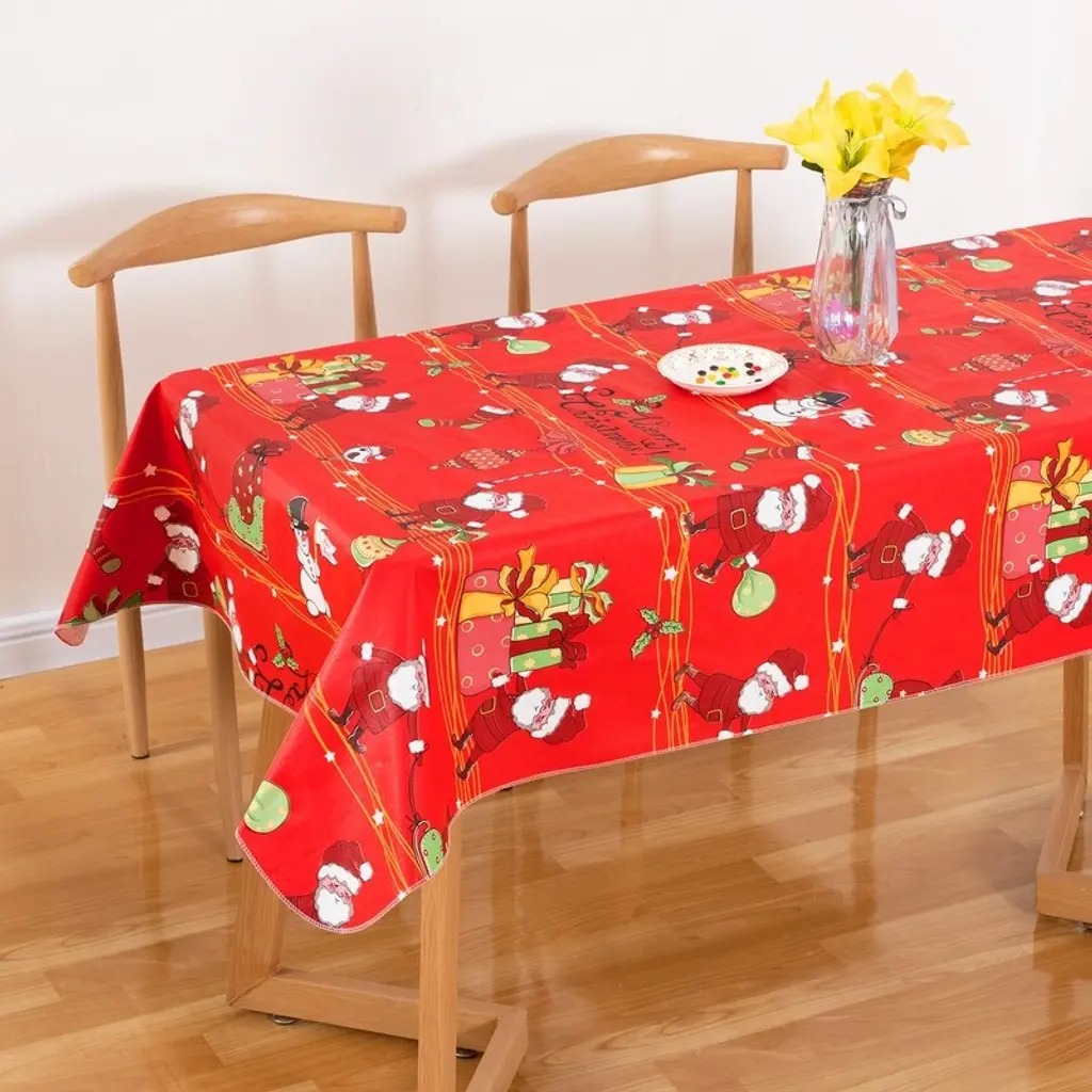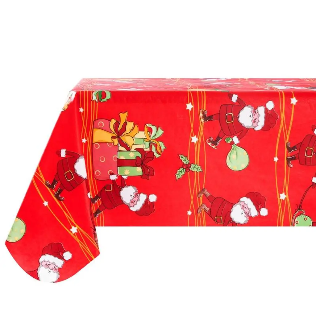 Bring a festive look to your table setting with Ray Star Christmas Tablecloth! Made of high-quality PEVA material in joyful Santa patterns, it is water-proof, oil-resistant, and helps to protect your tabletop from stains and spills. As an affordable solution, this PEVA Christmas tablecloth is perfect for different special gatherings, parties, weddings, or everyday use at home. Features:• Joyful and festive patterns elevate the look of your dining tablescape • Flannel backing can improve slip resistance and softly protect the table surface• Water-proof, oil-resistant, and easy to clean• Material: PEVA• Weight: 0.67 lb, 0.92 lb• Dimensions: 52 x 70 inches, 60 x 84 inches