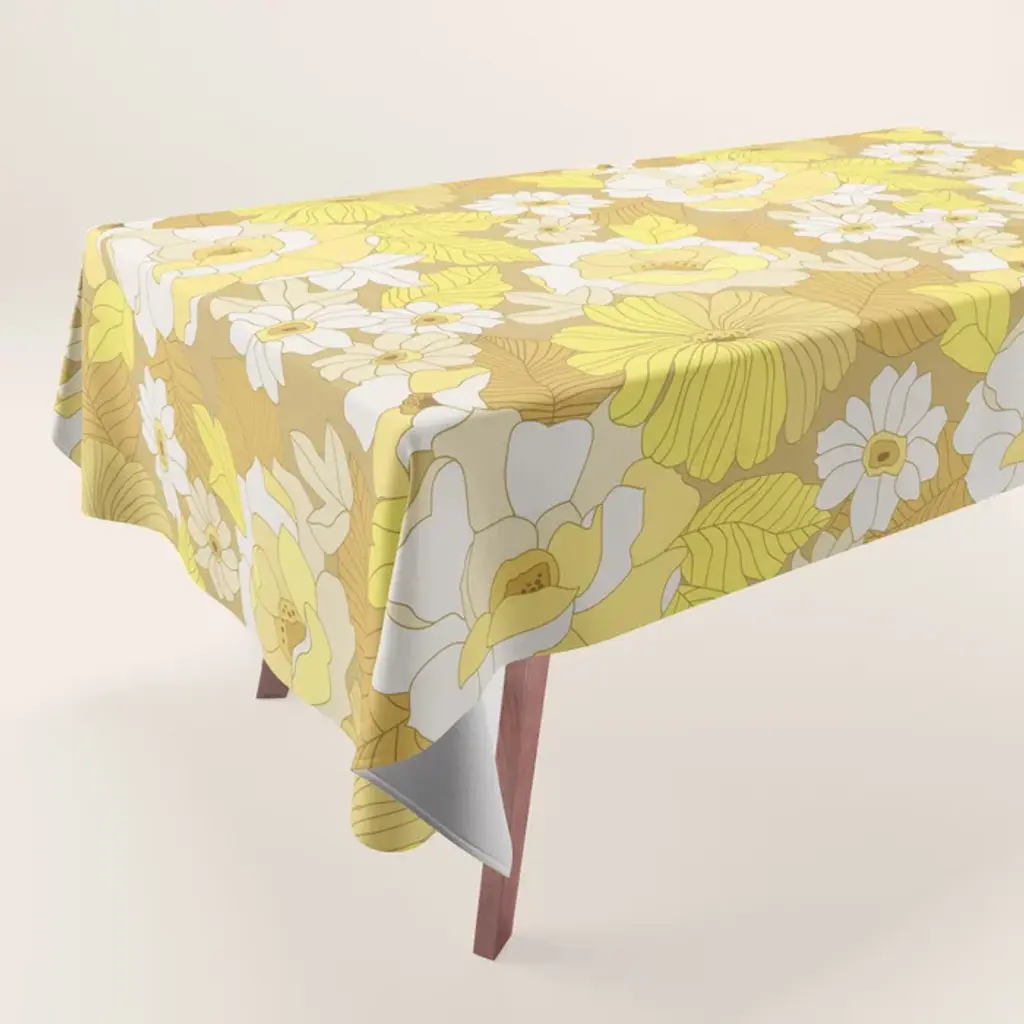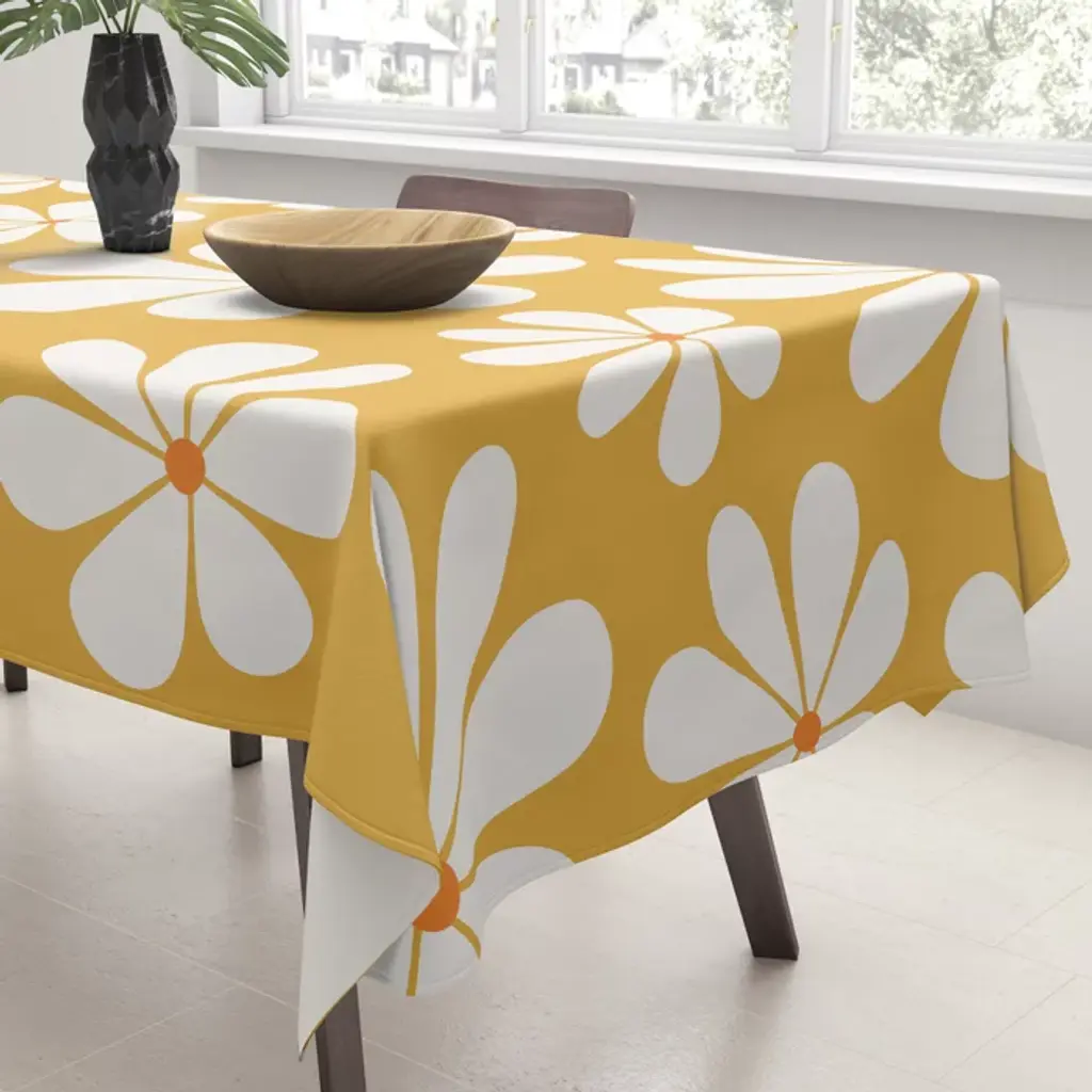 Retro Daisy Pattern - Golden Yellow Tablecloth