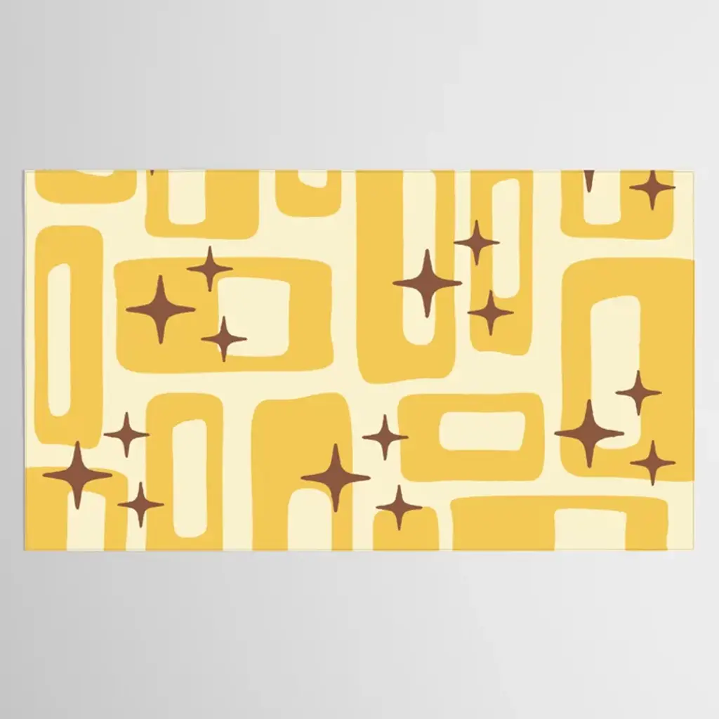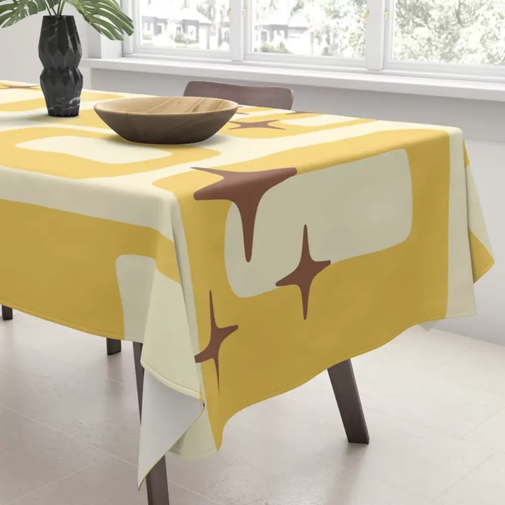 Retro Mid Century Modern Abstract Pattern 577 Yellow Brown Tablecloth
