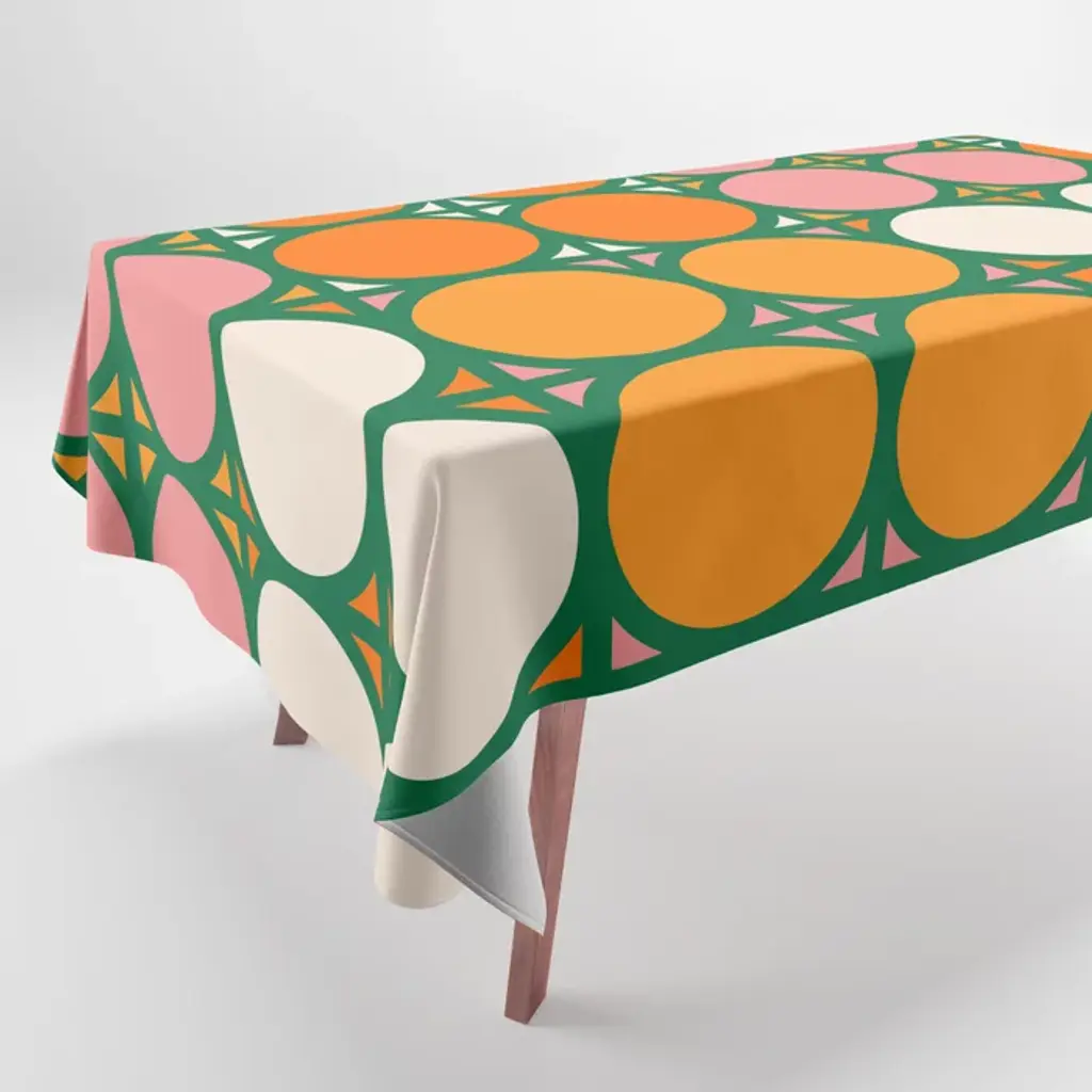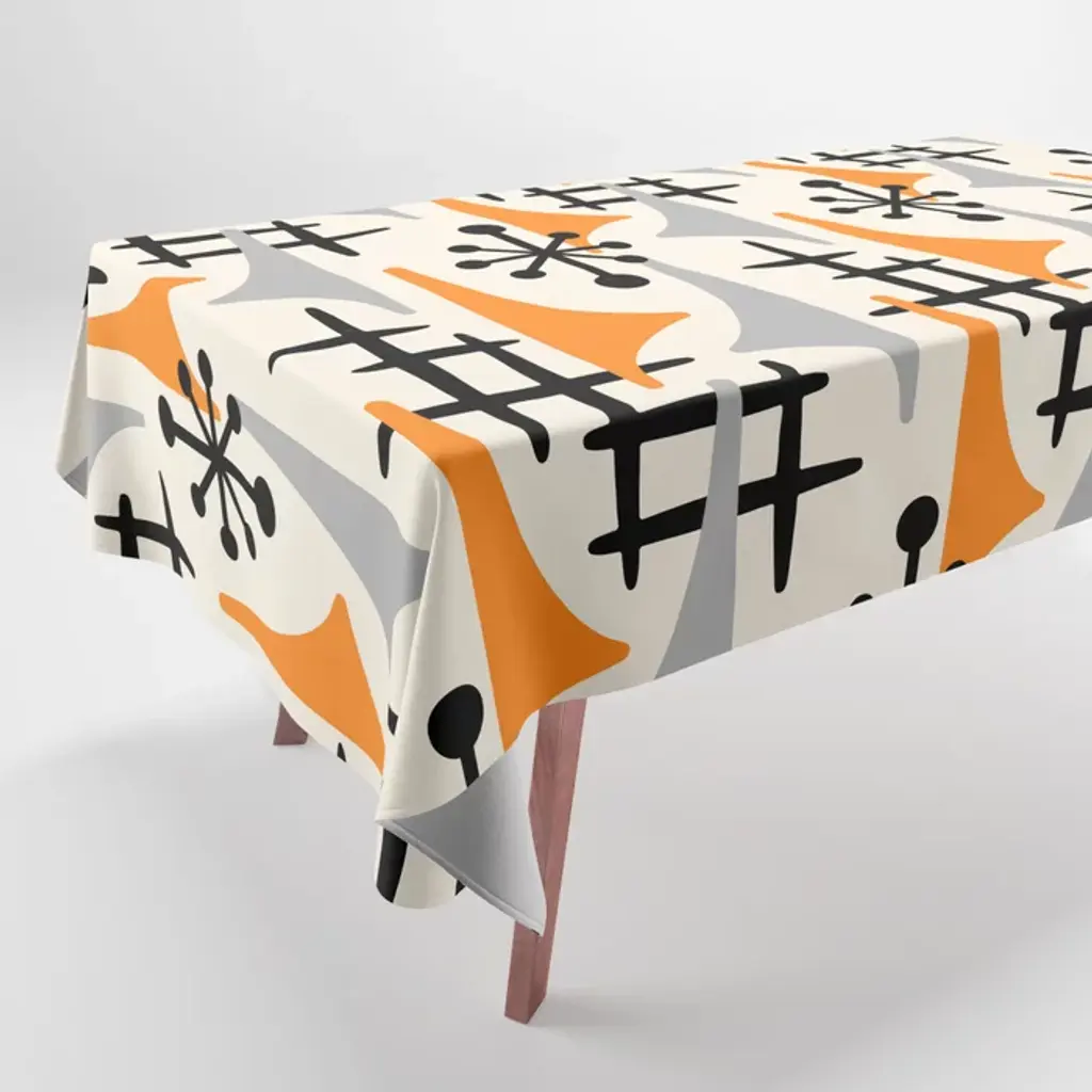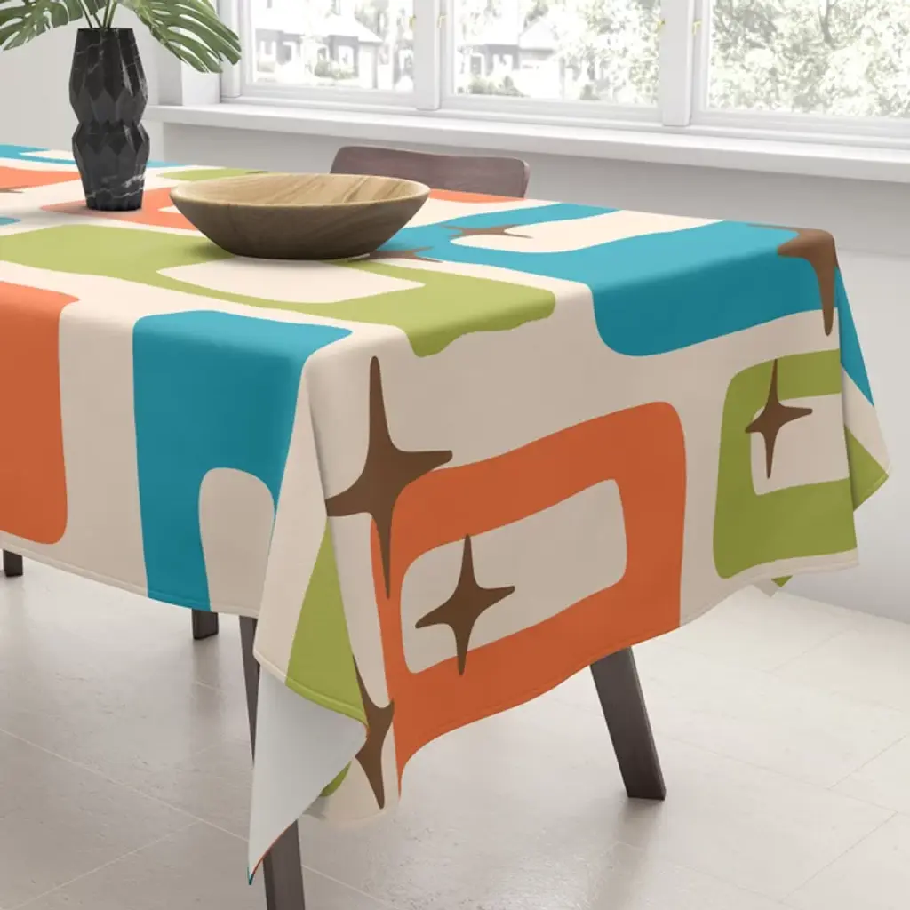 Retro Mid Century Modern Abstract Pattern 921 Googie Orange Chartreuse Turquoise Tablecloth