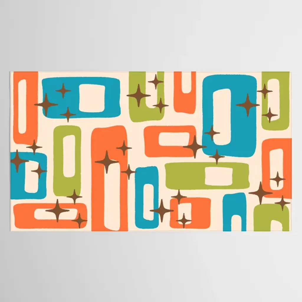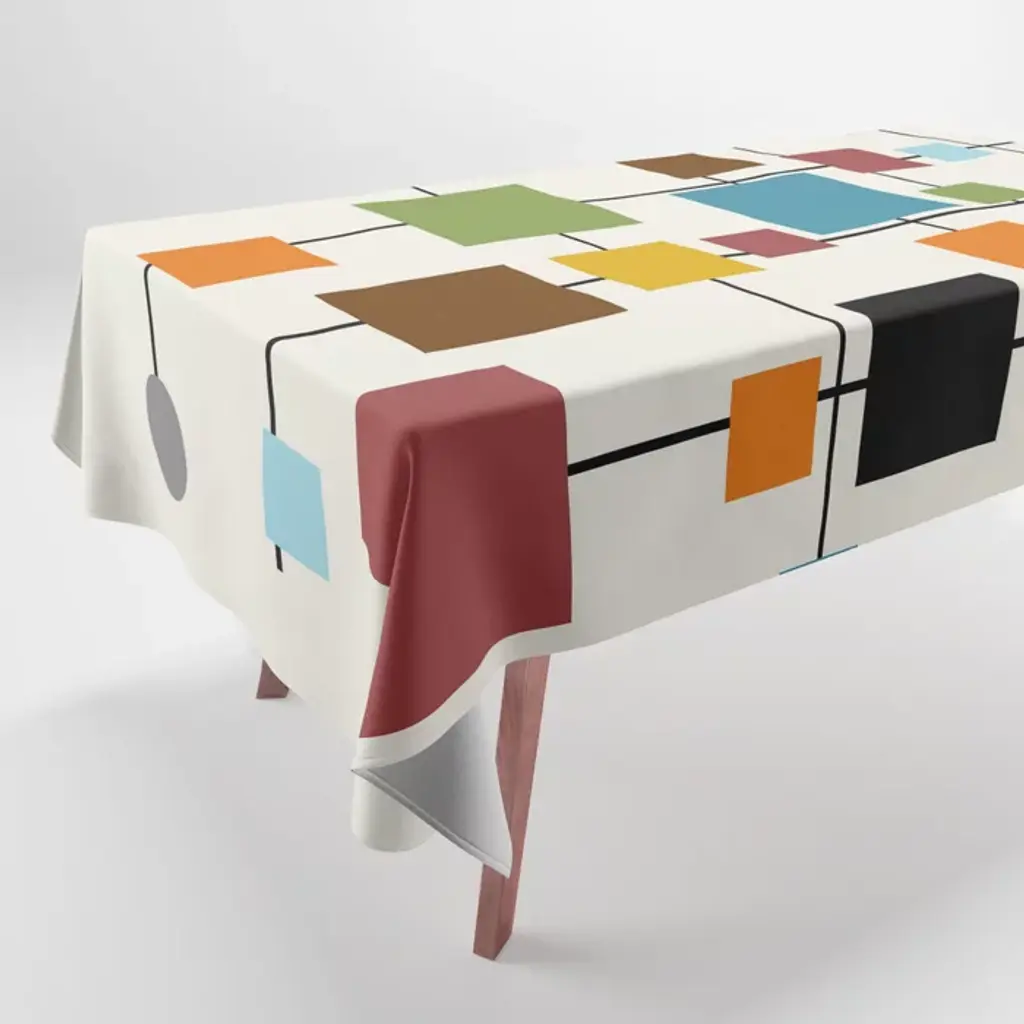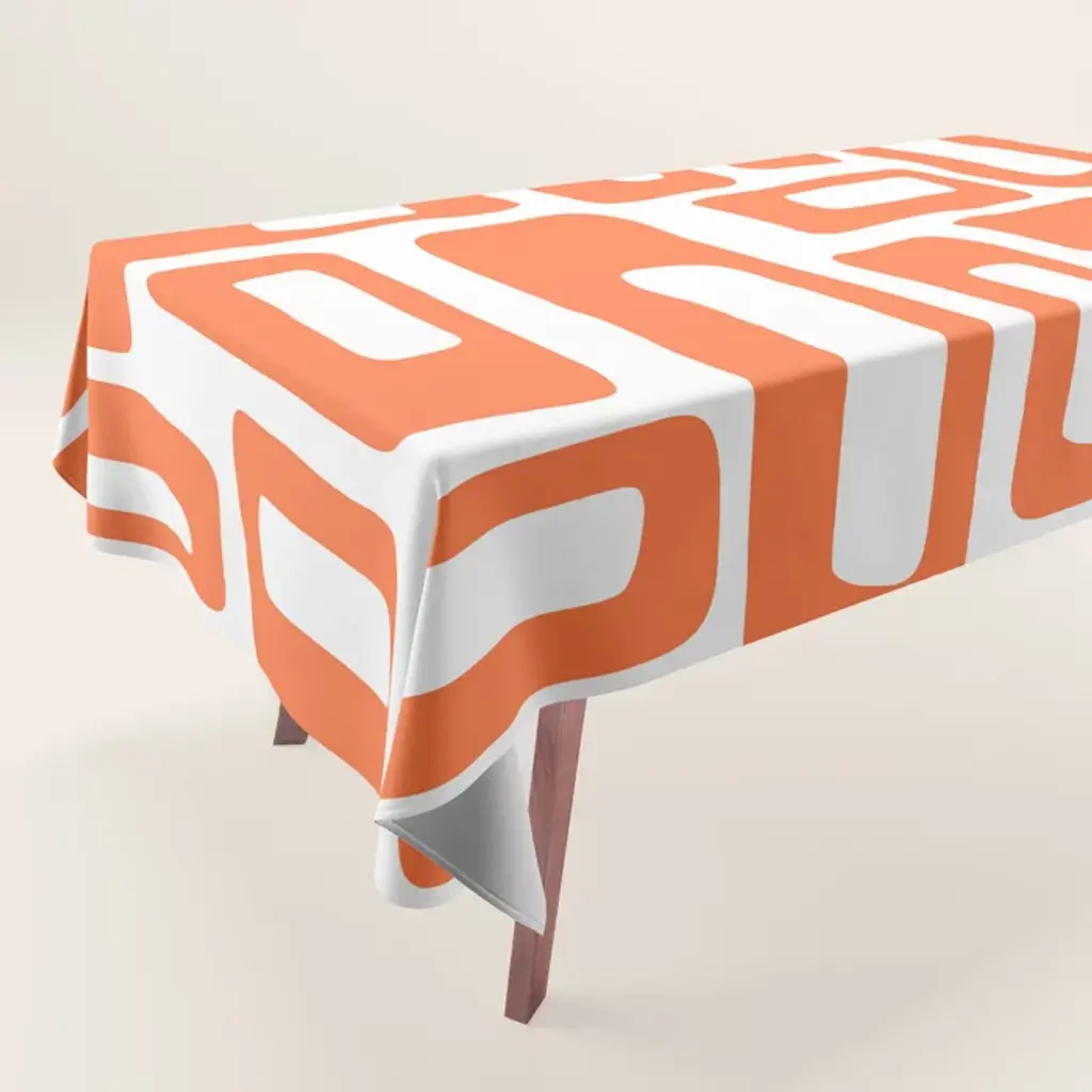 Retro Mid Century Modern Abstract Pattern 921 Googie Orange Chartreuse Turquoise Tablecloth