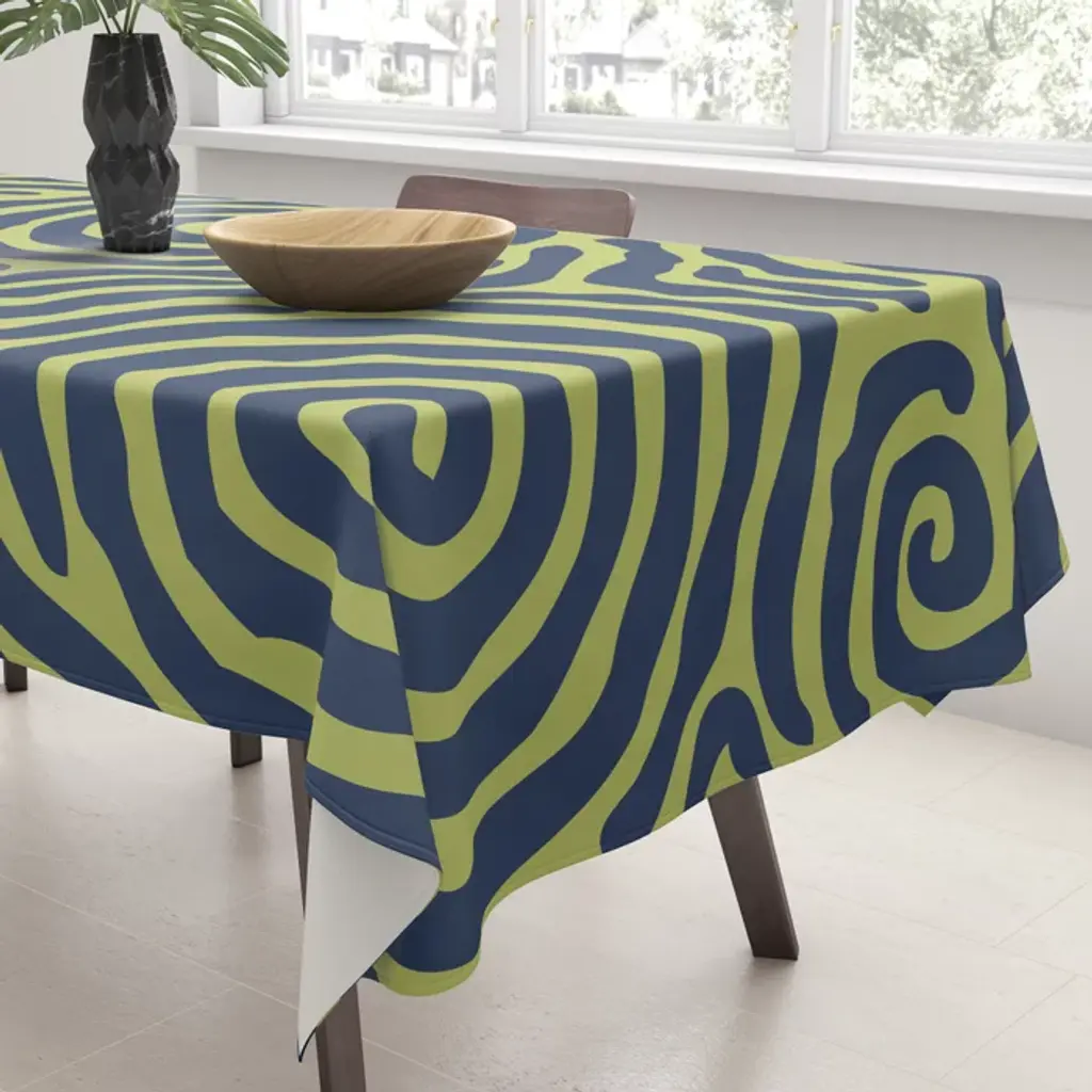 Ripple Effect Pattern Blue And Chartreuse Tablecloth