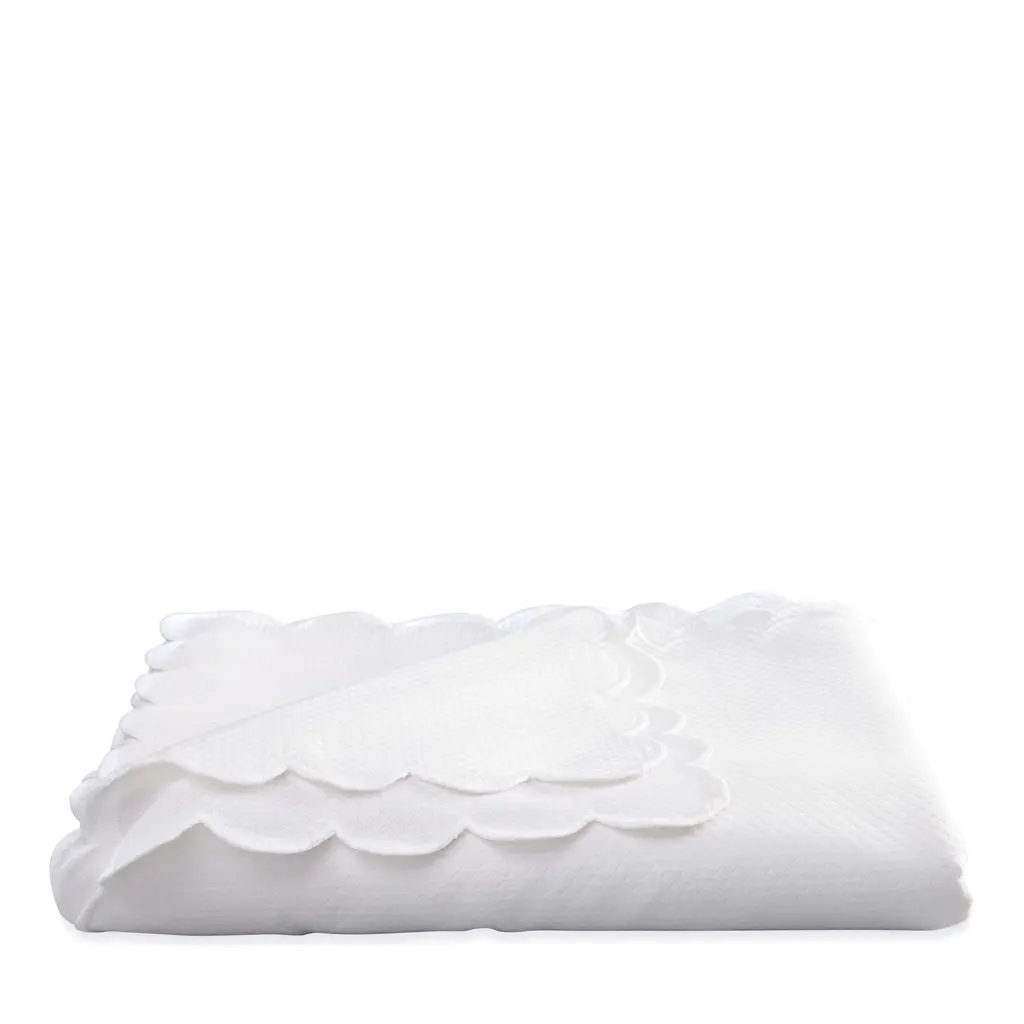 Featuring a timeless diamond pique and finished with scalloped edges, this classic collection of Savannah Gardens by Matouk is an elegant addition to any table setting.