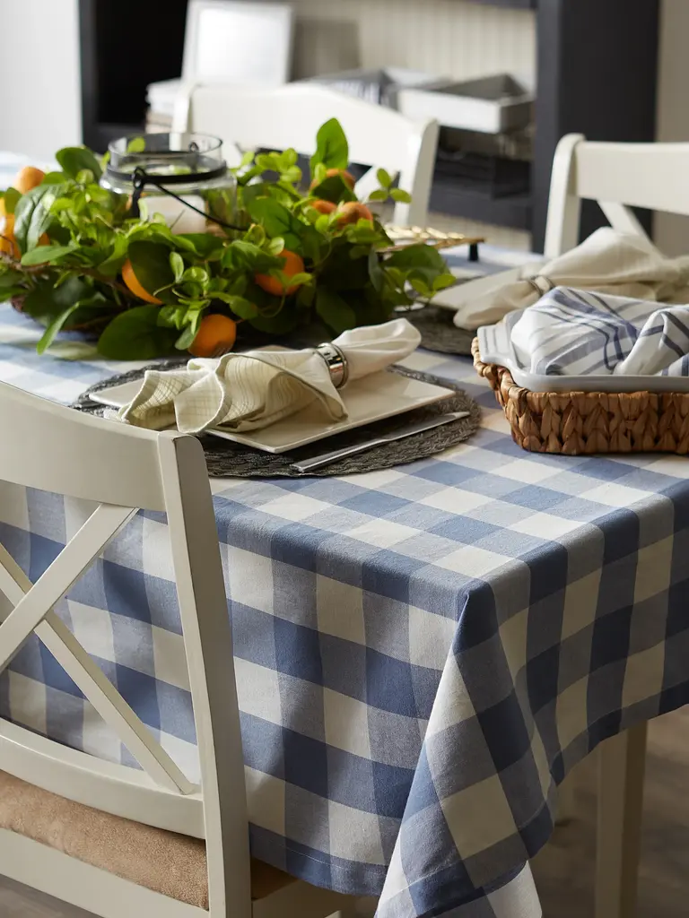 Enhance your dining experience with the Stonewash Blue Buffalo Check Tablecloth. Featuring a classic buffalo check pattern in a soft stonewash blue, this tablecloth adds a relaxed, yet stylish touch to your table setting. Crafted from durable, easy-care fabric, it’s perfect for casual meals, family gatherings, or seasonal occasions, offering both functionality and charm in one. The timeless design brings warmth and a cozy feel to any dining space.