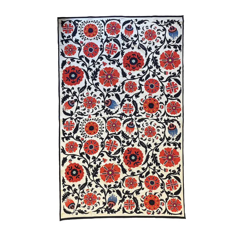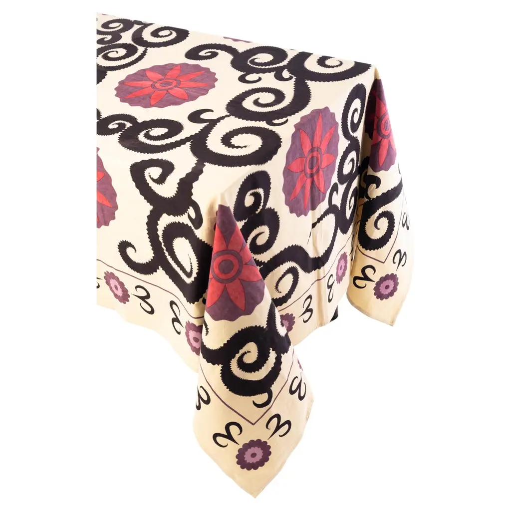 Add a touch of charm to your dining experience with our unique printed Suzani cotton tablecloth. Measuring 250x150cm, this tablecloth features intricate, vibrant patterns that celebrate the beauty of traditional Suzani design. This vibrant design brings warmth and artistry to your table, perfect for both everyday meals and special gatherings. A true statement piece, it combines style and functionality to create a beautifully inviting atmosphere.