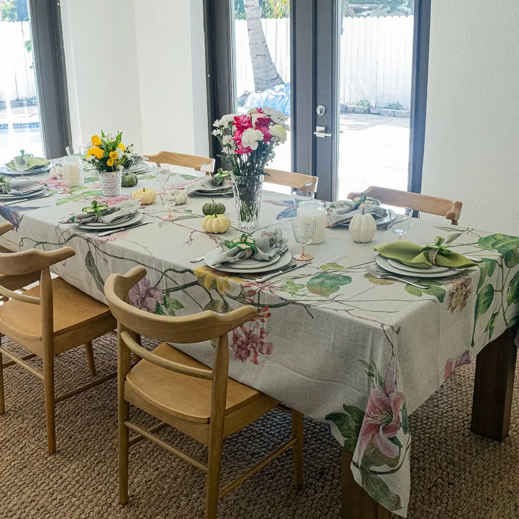 The Toulouse tablecloth invites you on a journey to the south of France. Its neutral motif, accented with pops of color, is both fun and subtly elegant.