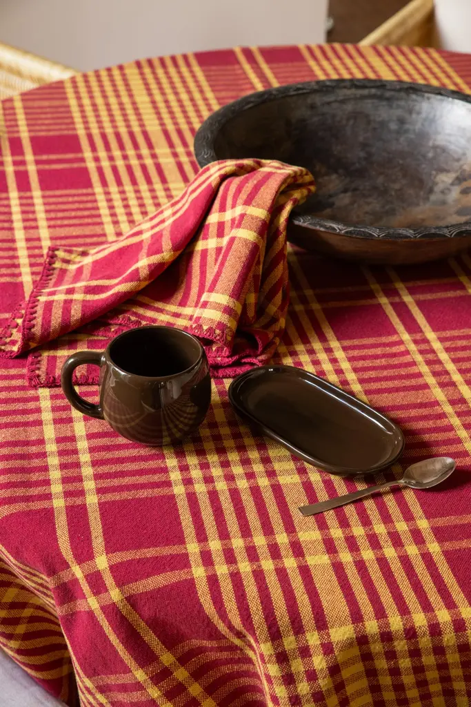 A tribute to traditional trattoria table settings, this cotton check jacquard tablecloth is the perfect dining companion for both indoor and outdoor settings. It features contrasting detail stitching and is available in two sizes. Matching napkins are also available. Made in Portugal.