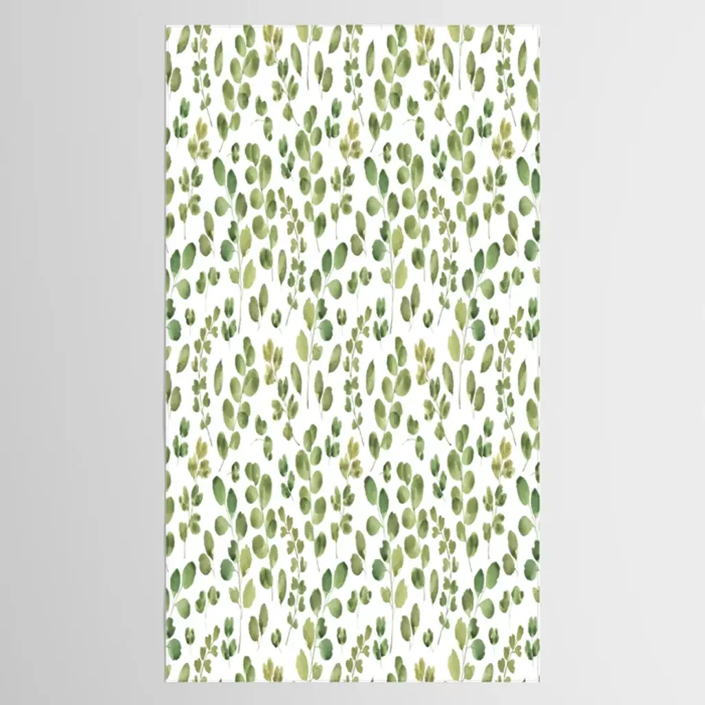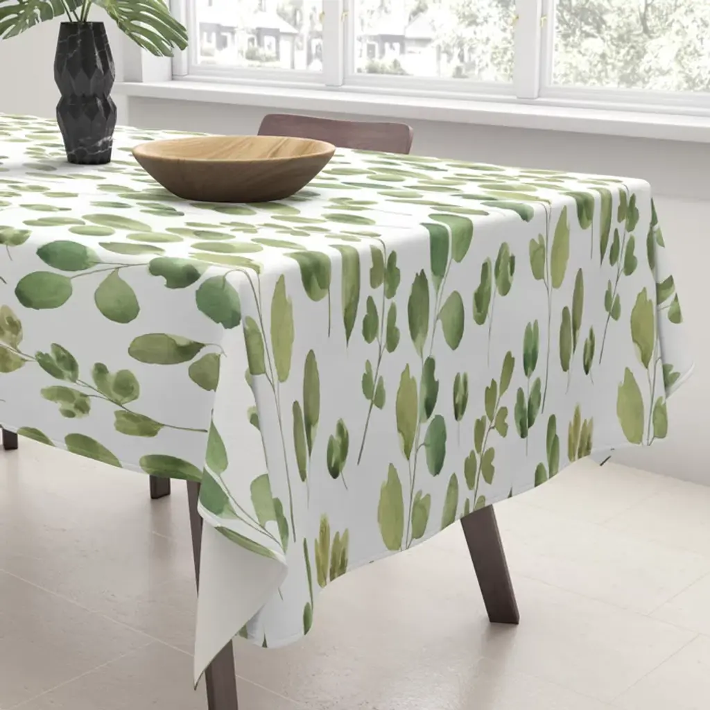 Watercolor Green Botanical Leaves Hand Painted Pattern Tablecloth