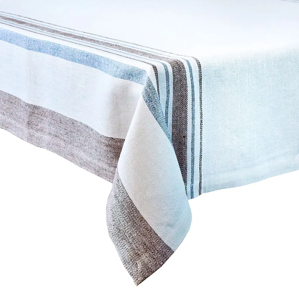 Watercolor Stripe Linen Tablecloth, White/seafoam