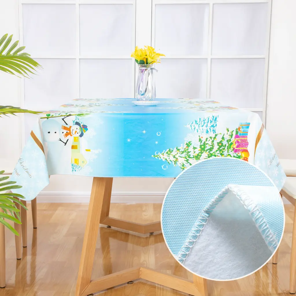 Made with high-quality material that ensures long-lasting usage and lined on the bottom with soft flannel backing to protect the table surface, Ray Star tablecloth can offer your table a new stylish look. It is 100% waterproof, stain-proof, and easy to clean and install. Whether you are dining in or enjoying a beautiful meal outdoor, the tablecloth is the perfect addition to elevate the look of any space.Transform your dining space into a festive haven with this enchanting Winter Wonderland tablecloth! Featuring cheerful snowmen, sparkling Christmas trees, and colorful presents, it brings the warmth and magic of the season to every meal. The soft, high-quality fabric is easy to maintain and adds an instant touch of joy to your holiday gatherings. Whether you're hosting a Christmas dinner, brunch, or simply adding a seasonal flair, this vibrant design creates the perfect backdrop for celebrating with family and friends. Make your table the star of the season with this charming and merry tablecloth! Features:• Joyful and festive patterns elevate the look of your dining tablescape • Flannel backing can improve slip resistance and softly protect the table surface• Water-proof, oil-resistant, and easy to clean• Material: • Weight: 0.85 lb, 1.09 lb• Dimensions: 52 inches x 70 inches, 60 inches x 84 inches