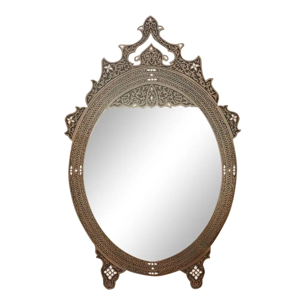 OVERALL SIZE - Measures 1 X 16 X 1 InchMade Of BrassAntique Finish7 Inch Diameter MirrorMakes A Great GiftThis exceptional tabletop mirror features an antique pewter finish and showcases an exquisite shield design that adds a touch of timeless elegance to any space. Meticulously crafted from high-quality brass, it exemplifies fine craftsmanship and attention to detail. With a generous diameter of 16 inches and a depth of one inch, this mirror offers a spacious reflective surface, allowing you to view yourself from various angles with ease. The antique pewter finish imparts a sense of classic sophistication, making it a versatile and tasteful addition to both traditional and contemporary interiors. The shield design enhances the mirror''s visual appeal, making it a captivating focal point in any room. Whether placed on a vanity, dressing table, or mantel, it effortlessly complements a wide range of decorative styles. Not only does this mirror serve a practical purpose, but it also adds a dose of vintage charm and sophistication to your living space. Its compact size and freestanding design provide flexibility in positioning, allowing you to achieve the perfect angle and lighting for your grooming routine. Whether as a thoughtful gift or a personal indulgence, this antique pewter table top mirror elevates the aesthetics of your home or home office. Its enduring beauty and exceptional craftsmanship make it a cherished addition that stands the test of time.