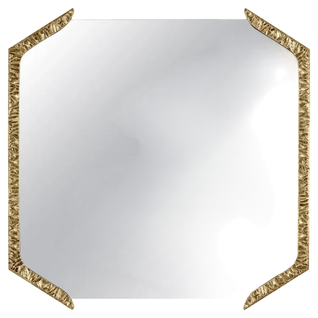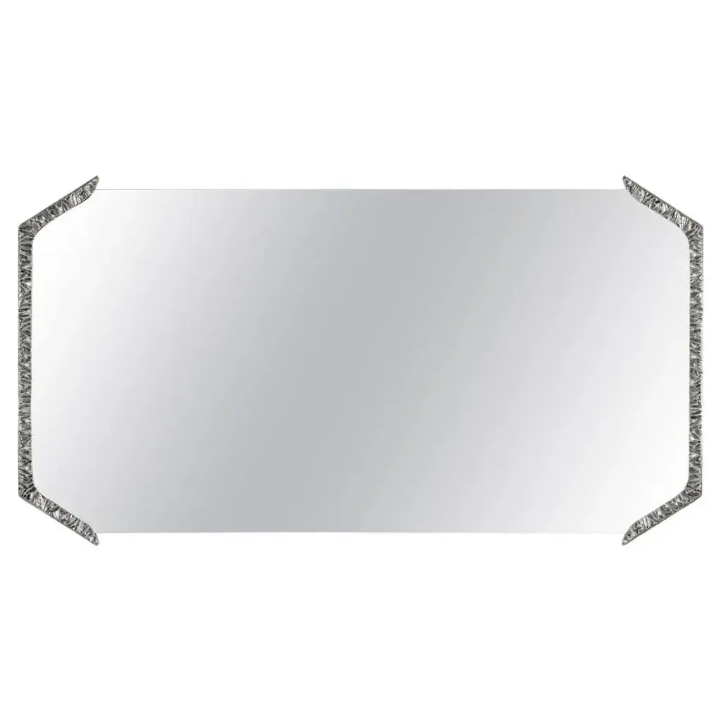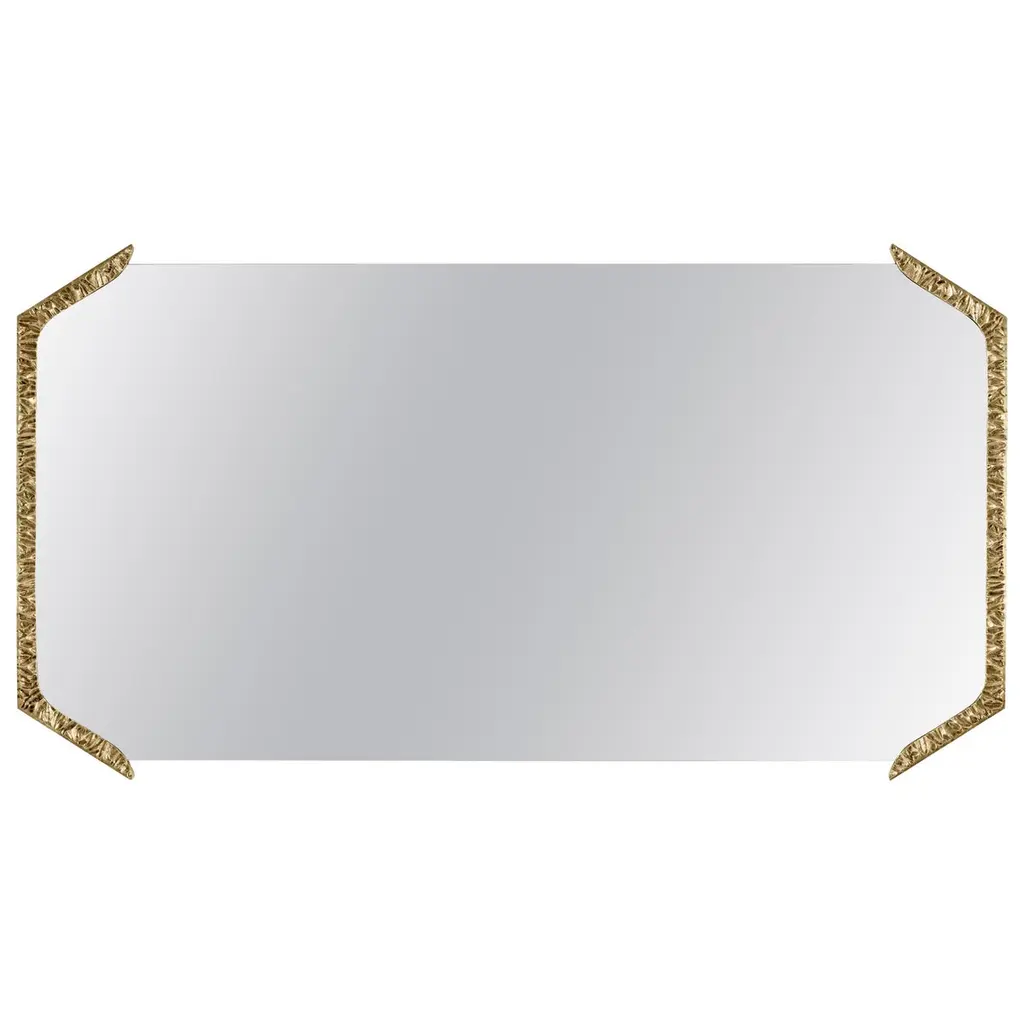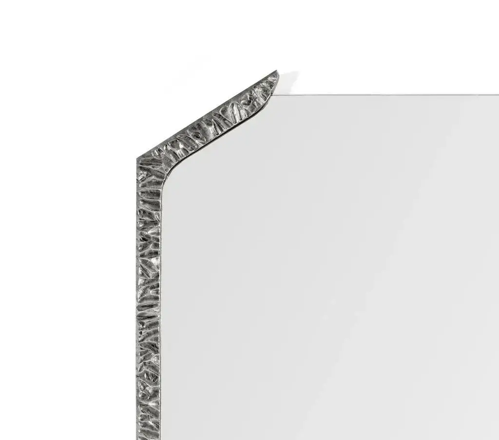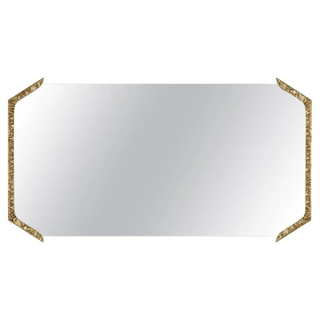 Alentejo Nickel Rectangular Mirror by InsidherLand Dimensions: D 3 x W 150 x H 85 cm. Materials: Cast brass covered by nickel bath, clear mirror. 33 kg. Available in other finishes. Alentejo mirror has the similar conceptual approach to the typical cork oaks trees we find in the South of Portugal, originally made by the Alentejo side table. Resembling the same angular structure of these trees, the mirror is embraced by two grand tree trunks which branches are opened in obtuse angles. In fact, this creation was once again influenced by a particular tree standing near a lake that naturally reflects a perfect match of itself in the water mirror. The structure is in cast brass with patinated effect and results of a careful sculpted work that highlights the natural details.