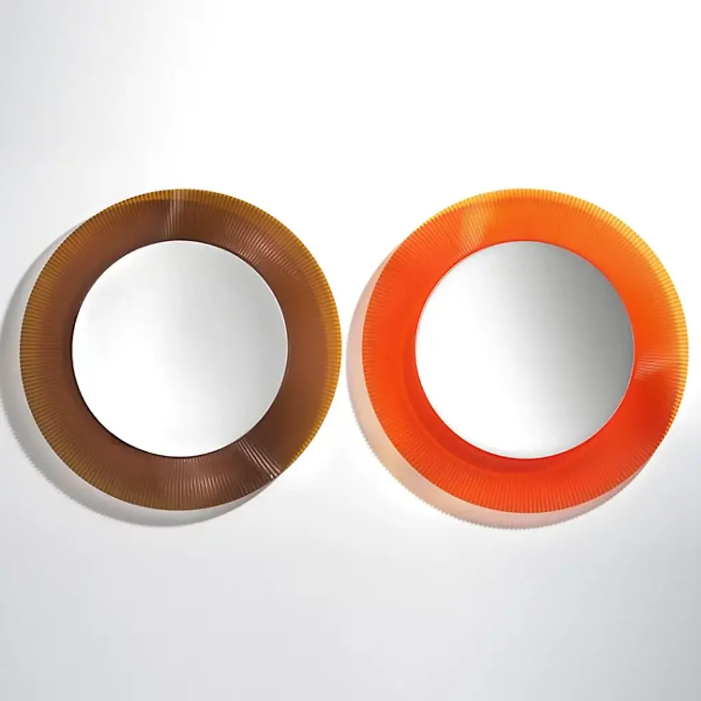 A heavenly modern mirror. The Kartell All Saints Mirror takes its design inspiration from the Baroque styling of the Bourgie Table Lamp. Its round plastic frame has an intricate pleated texture that allows it to sparkle and refract light, creating a veritable halo around the mirrored surface...and making whoever is looking into it appear truly divine.