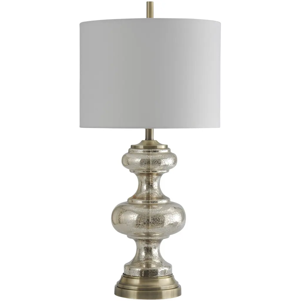 Antique Gold Mirror Table Lamp, White Drum Shade