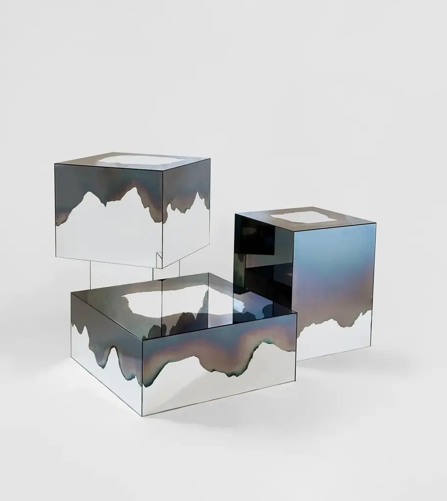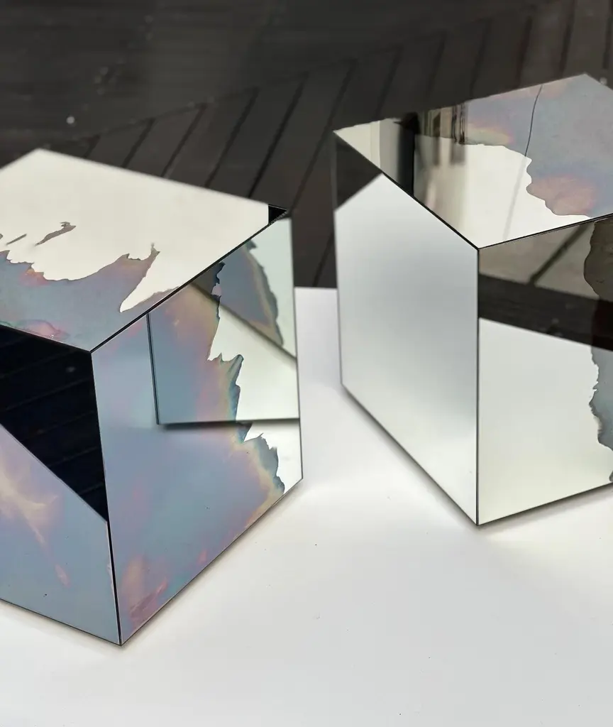 Ash Sculptural Smoke and Silver Mirror Table by HomaDimensions: W 100 x D 70 x H 30 cmMaterials: Smoke and Silver Mirror.HOMA is a contemporary design atelier based in Istanbul. The atelier’s trademark processes are handblown glass, glass fusing and mirroring, created through the use of multidisciplinary techniques and materials. Over time, with meticulous research and experimentation HOMA has acquired unique expertise in mirrors, lighting and home interior objects thus elevating things of function to the status of art. Handcraft HOMA has discovered one of the last remaining masters of handcrafted mirroring in the Eastern Mediterranean. The atelier is original in its simultaneous use of different techniques to create organic and flowing mirror shapes. Each piece celebrates reflection, translucency, movement, light, time, multiple layering and aesthetic, spontaneity…Object HOMA’s pieces are an exploration of organic, abstract, as well as unexpected flowing lines and shapes. Our design service offer is presented in a catalogue of over 50 designs in fluid and geometric shapes achieved through multidisciplinary techniques.Materiality Through the use of mixed textures and the layering of mirror elements unexpected effects are created on glass, which play with one’s visual perception as well as the surrounding space. Glass, stone, marble, messing mirror techniques, bronze, wood and clay are just some of the Earth’s materials that find their way into HOMA’S offerings. HOMA offers a vast materials library.Architecture Formally trained in interior architecture, HOMA founder, Tuğba Koç has transformed her knowledge and experience into layered aesthetic design objects. Now, with a team of architects and artisans, Tuğba applies her hands in a workshop environment on interior and exterior objects to enrich earth-derived, breathing, living materials. HOMA’s interior objects are informed by art and driven by the philosophy that nothing artificial should be allowed to interfere with the energy of one’s living environment.