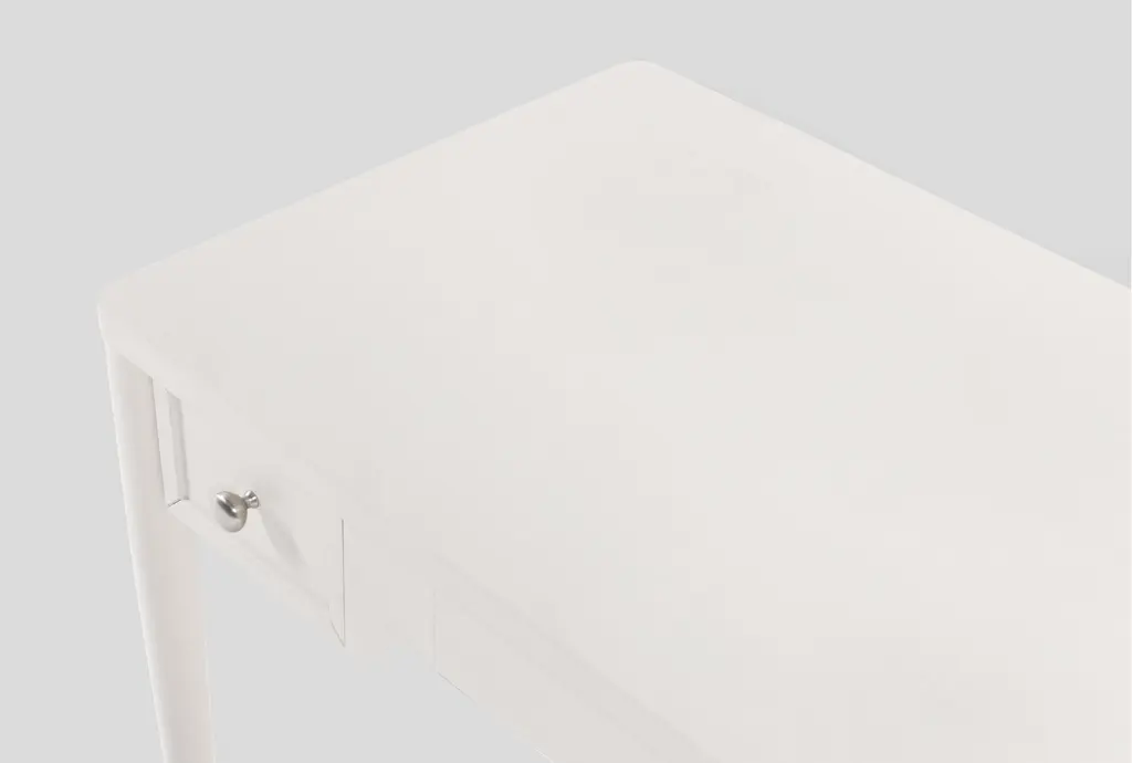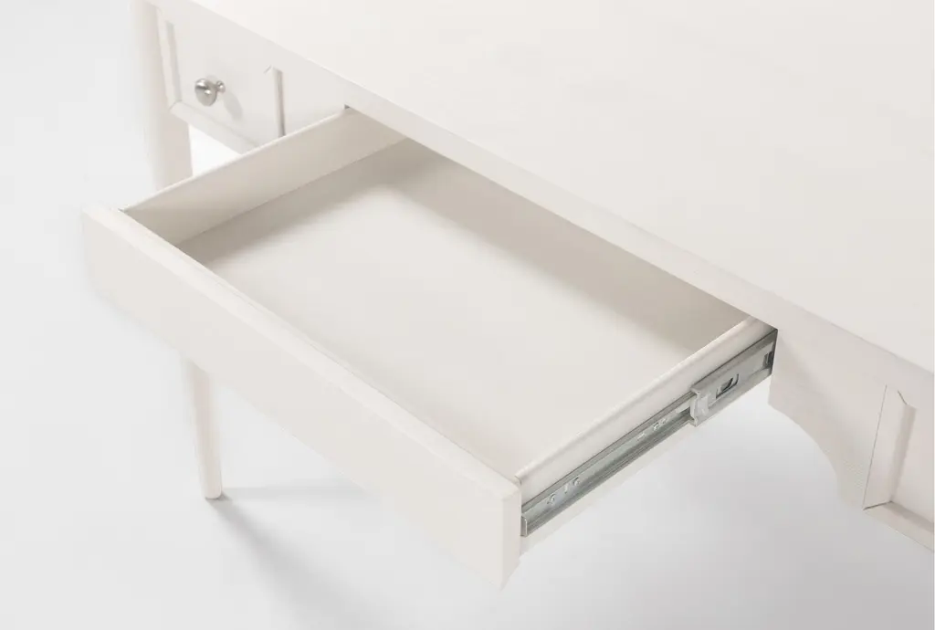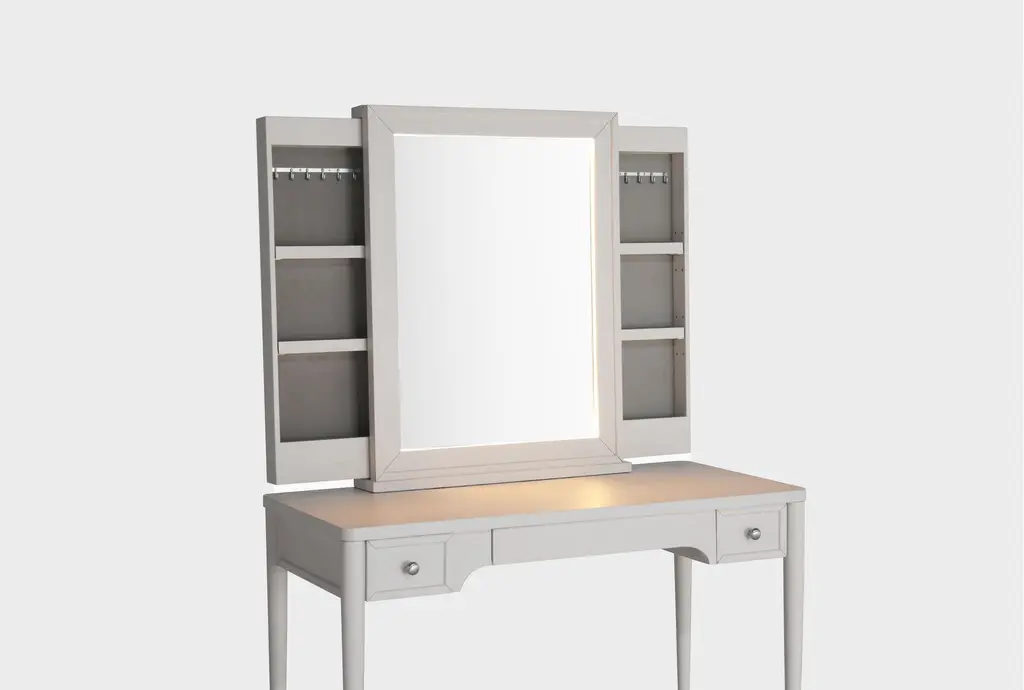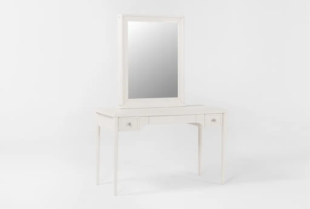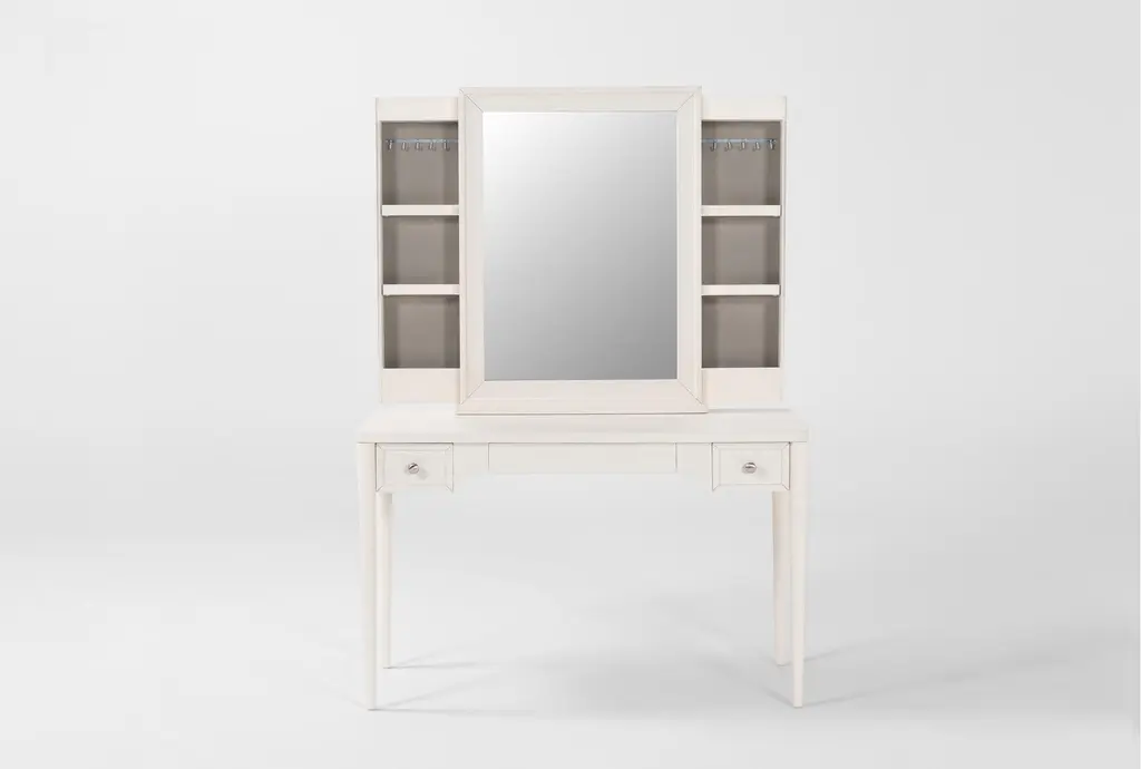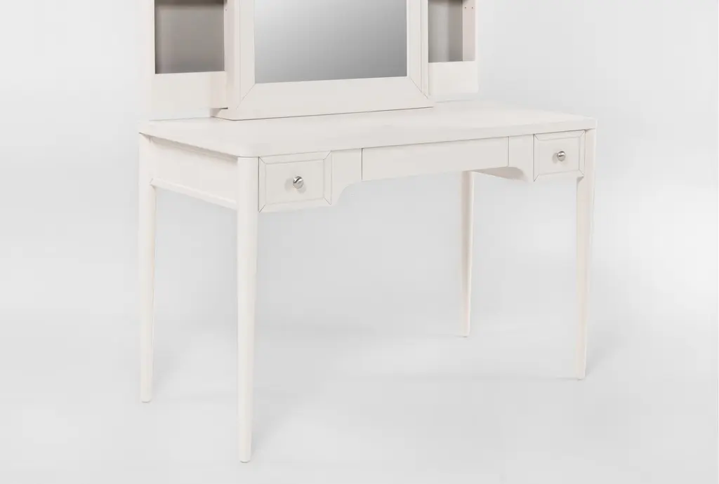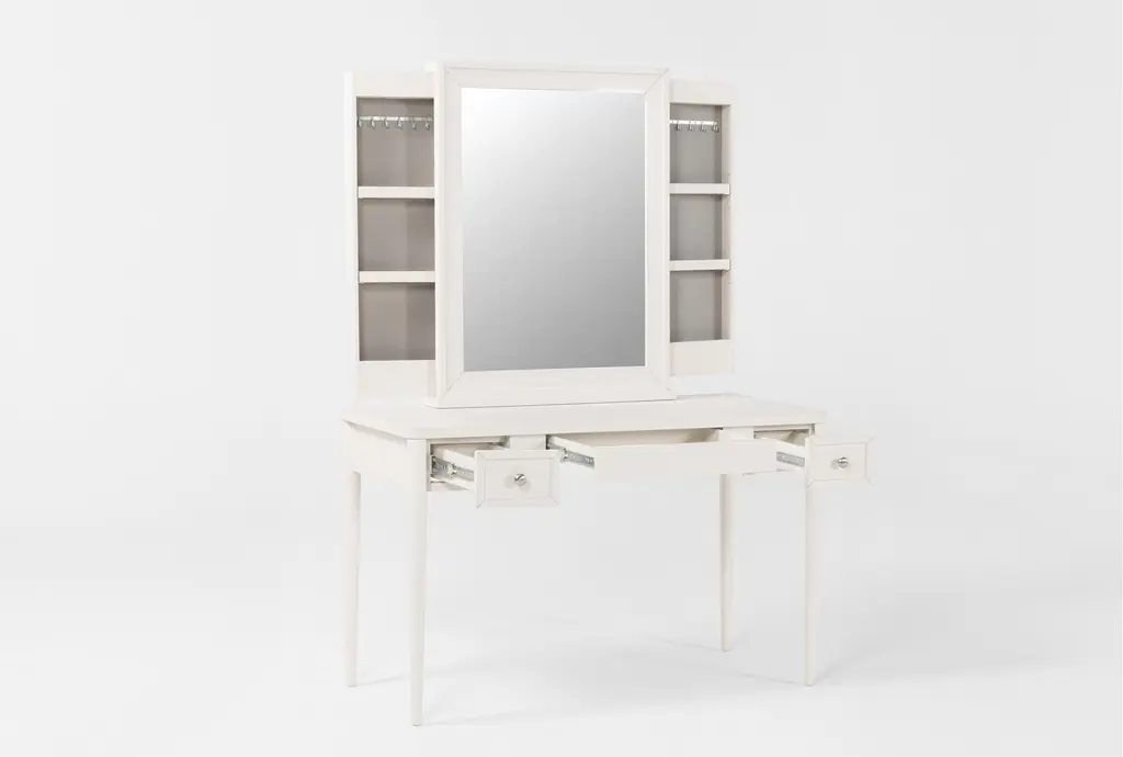Austen White 3-Drawer Bedroom Makeup Vanity Kids Desk & Mirror With Hidden Side Storage & Led Lights
