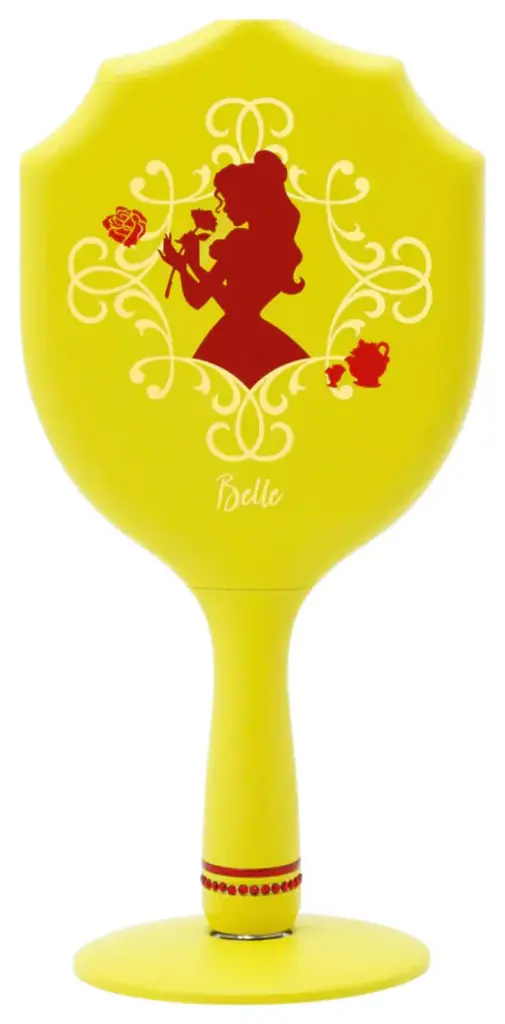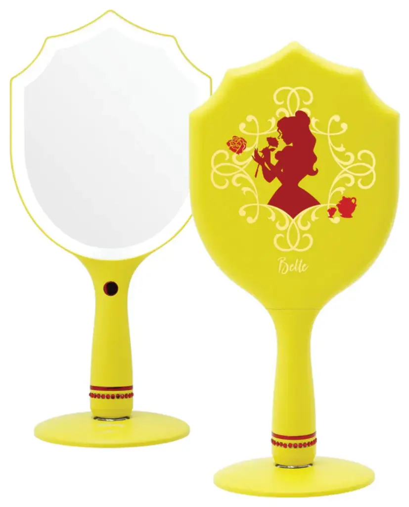 Impressions Vanity This magic mirror is inspired by your favorite Disney Princess, outlined by a bright LED light strip, and powers on with just the click of a shimmering button. Includes a magnetic ball standing base to dock the mirror for hands free use. Rechargeable for cordless use. Easy recharging by simply plugging in the provided USB charger to the mirror. Fit for a princess.Features:ENCHANTED HANDHELD MIRROR: Inspired by our favorite Disney Princess, this magic mirror has a handle for comfortable holding. A Belle LED hand mirror will be a charming piece in your vanityLIGHTED MIRROR: This makeup mirror is outlined by a bright LED light strip with three light color temperatures to choose from: cool white to natural or warm light tones. Press and hold the button to adjust the brightnessADJUSTABLE STANDING BASE: Includes an adjustable magnetic ball standing base to dock the mirror for hands free use and can tilt for the perfect angle. The compact and slim design makes this mirror travel-friendly and ideal for storing in your luggageRECHARGEABLE: Rechargeable for cordless use. Easy recharging by simply plugging in the provided USB charger to the mirror