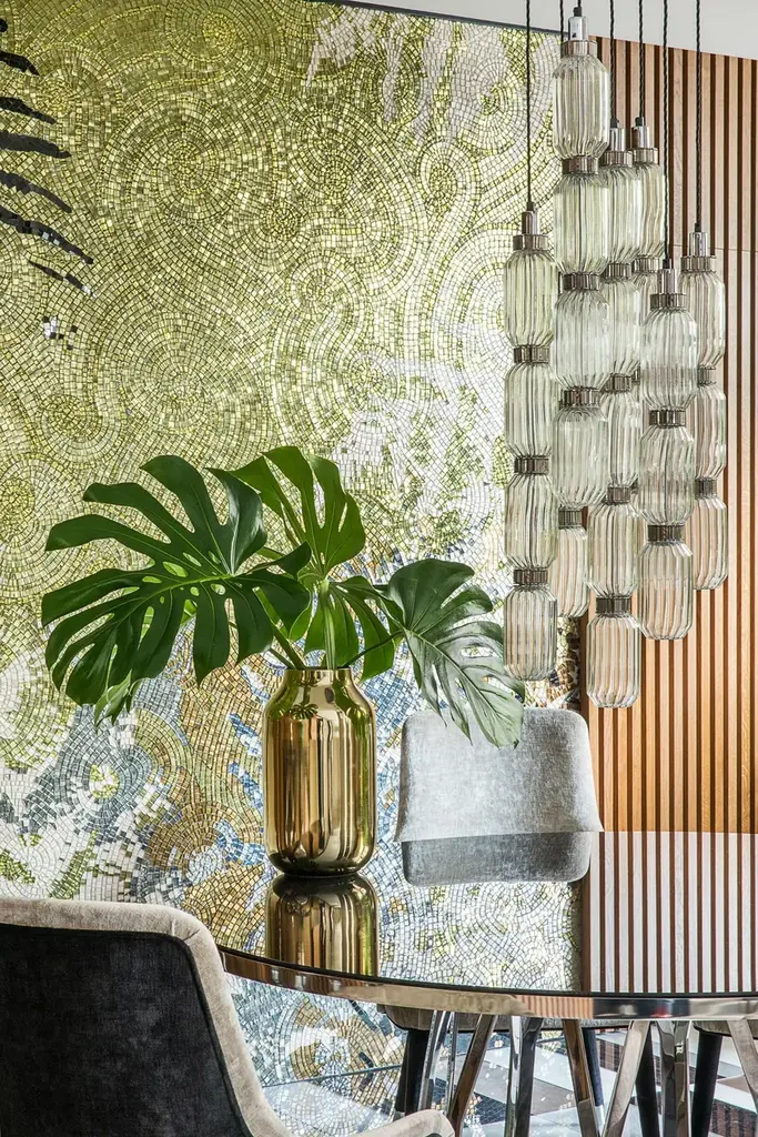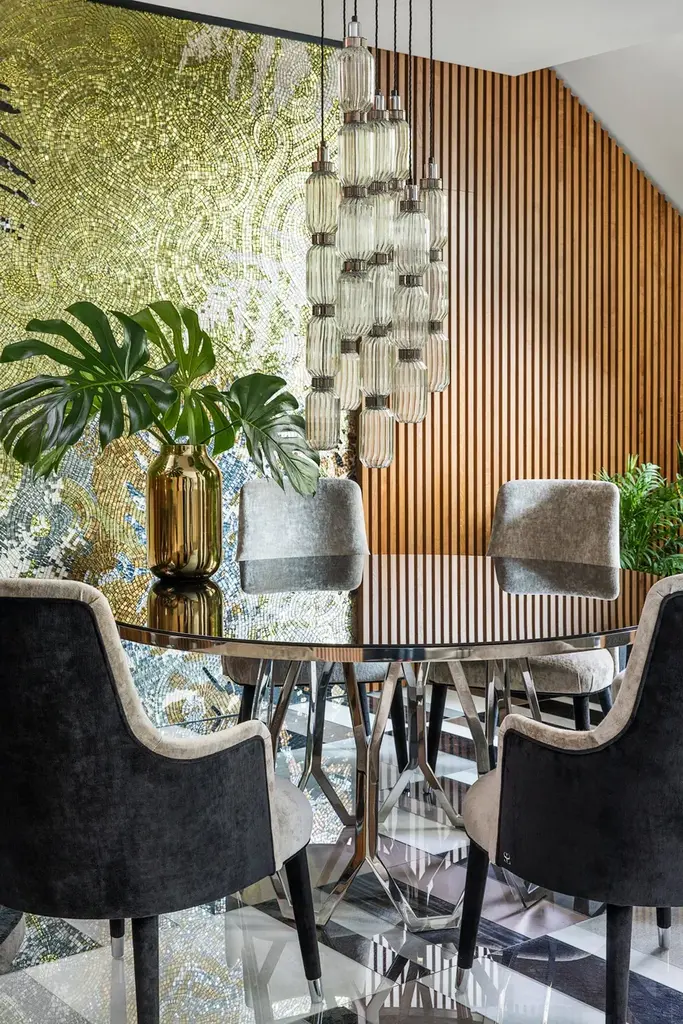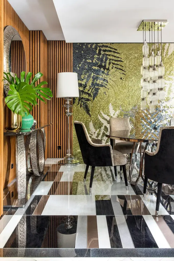Geometries, game of solids and voids, fine balanced proportions. Sophisticated and expert handmade workmanship make Borgia table a distinctive item in any environment.Structure in metal with optional mosaic inserts. Top in mirror, marble, or liquid metal coating.Collections characterized by elegant and classic lines. The pieces, real works of art, are made entirely by Masters mosaic, leather craftsmen and cabinetmakers. The evolution of this line combines masterful craftsmanship with contemporary design.