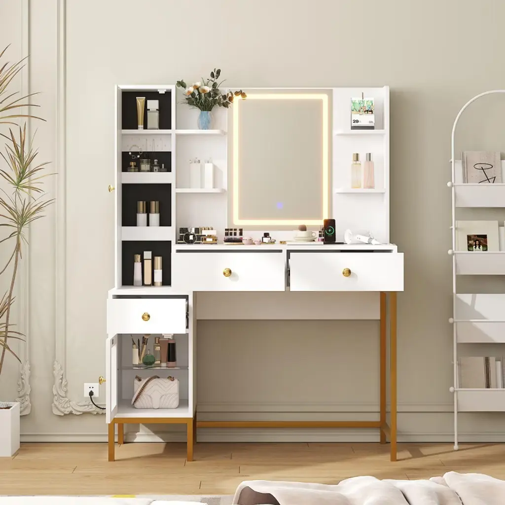 A well-organized dressing table with a consistent color scheme in the bedroom is essential; it not only serves a practical purpose but also significantly enhances the room's beauty.With our dressing table, you can say goodbye to small and messy tables and enjoy a better life.Our vanity desk is equipped with detailed instructions, making the installation process simple and quick.Its sophisticated and charming design will give them pleasure, Whether it's Valentine's Day, Mother's Day, Christmas, your lover's birthday or your girl's coming of age ceremony, this makeup vanity desk with mirror and lights will be the best choices as a gift for her.