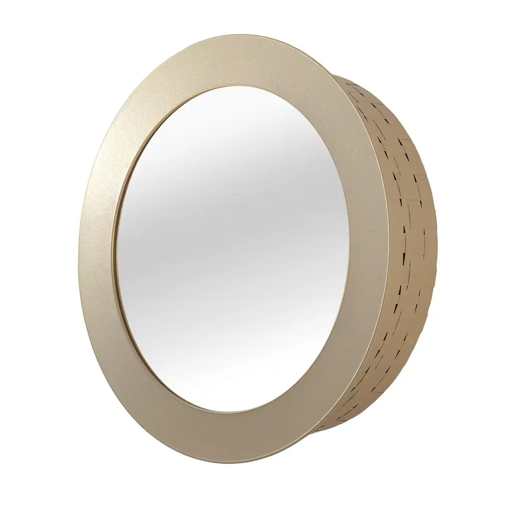 Countertop round mirror. Metal structure.