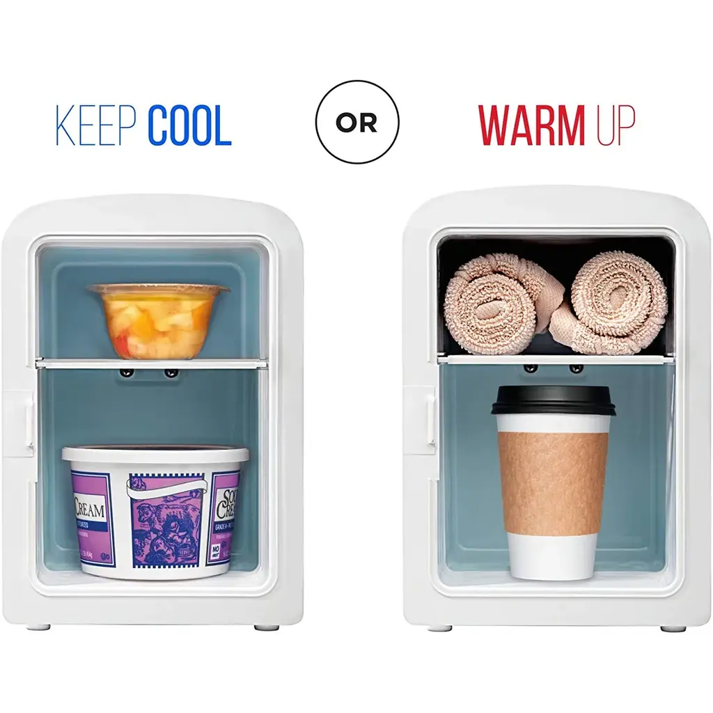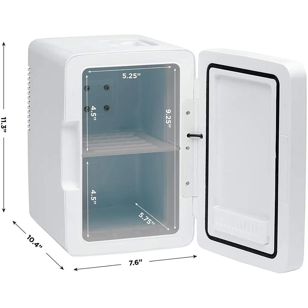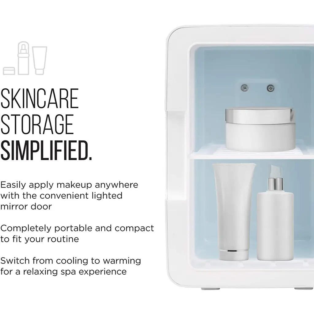 The Chefman Portable Mirrored Beauty Fridge with LED Lighting does so much more than keep things cold. Extend the life of your beauty products with this compact, desktop design featuring a chic mirror and ring light. Now, perfectly temperature-controlled products don't have to compete for space in your fridge. Enjoy the luxury of convenient storage anywhere in your home, office, dorm, or even on the go. With plugs for standard home outlets and for car chargers, the beautiful design and unparalleled convenience of this Personal Mirrored Beauty Fridge with LED Lighting is totally portable. Simply flip a switch to change from cool to warm to keep your heated essentials hot all day long. Perfect for your morning coffee and even for storing your lunch at work. Plus, the mirrored door adds a sophisticated design element to help make your space shine. Makeup application, storage, and preservation is simplified with this all-in-one beauty device. Fit up to six of your favorite 12 oz. canned beverages for a refreshing drink any time or keep the Personal Fridge in a nursery to save trips to the kitchen and time heating up milk. From your morning skincare routine, to your busy workday, on your car ride home, and in your bedroom at night, enhance every day with the perfect item for you. cETL approved with advanced safety technology for long lasting durability, & 1-year assurance provided by Chefman, so you can purchase worry-free - we've got your back! For information on how to use your product, scroll down for a PDF User Guide. 120 Volts - RJ48-6-ML-WHITE