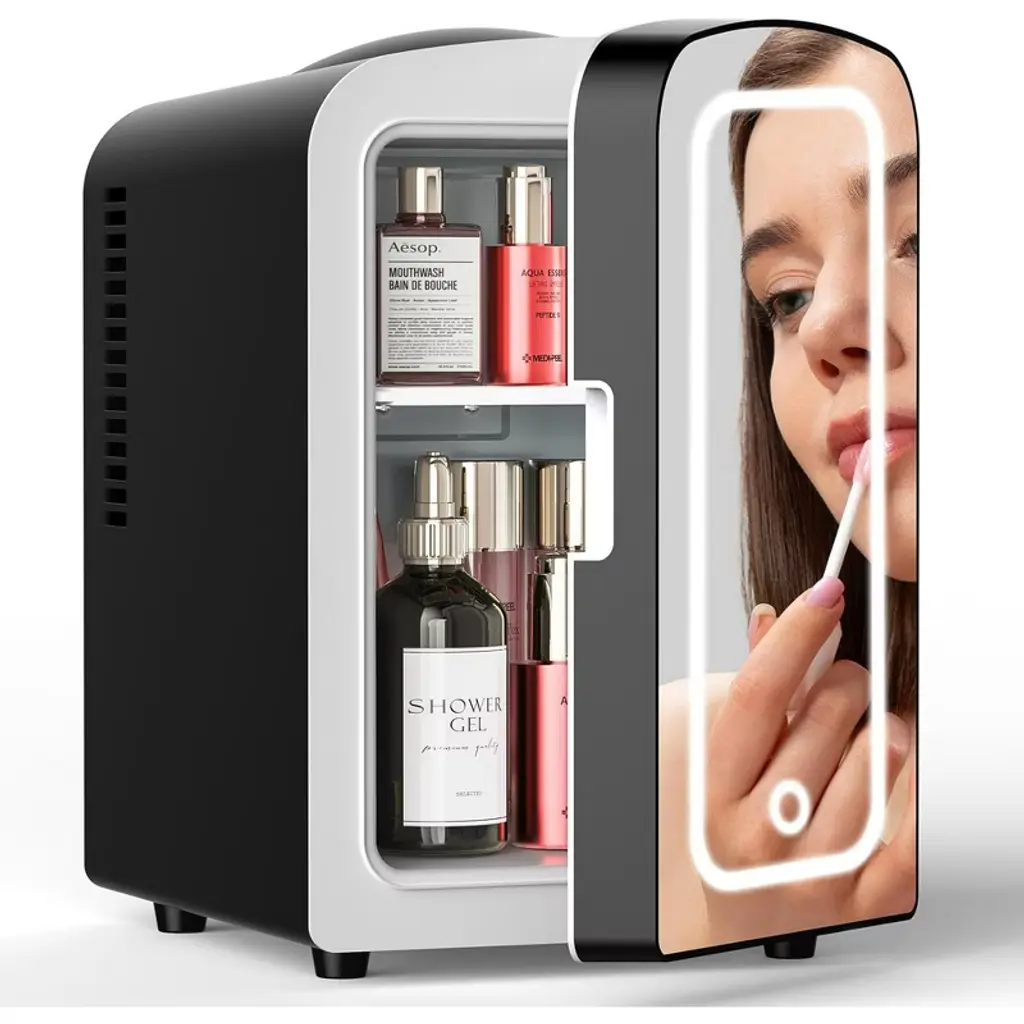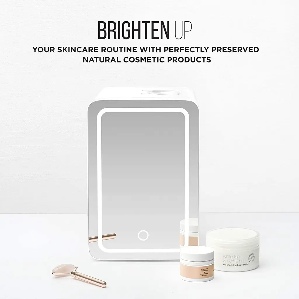 Chefman Portable Mirrored Beauty Fridge With Led Lighting, 6 Liter - White