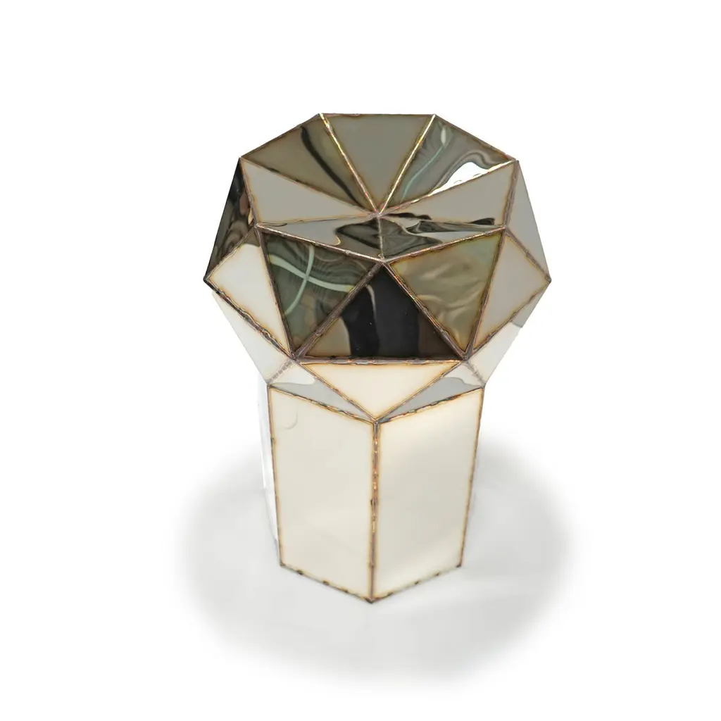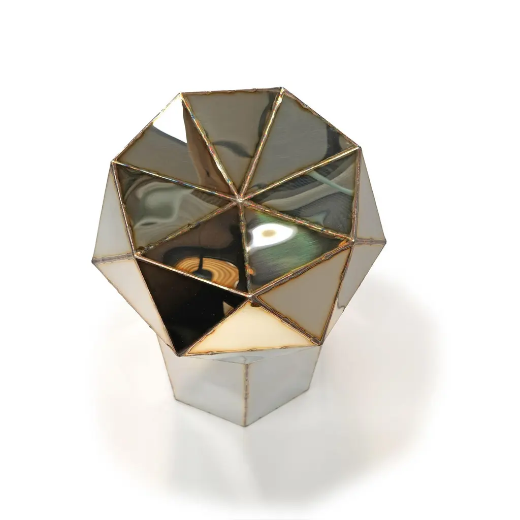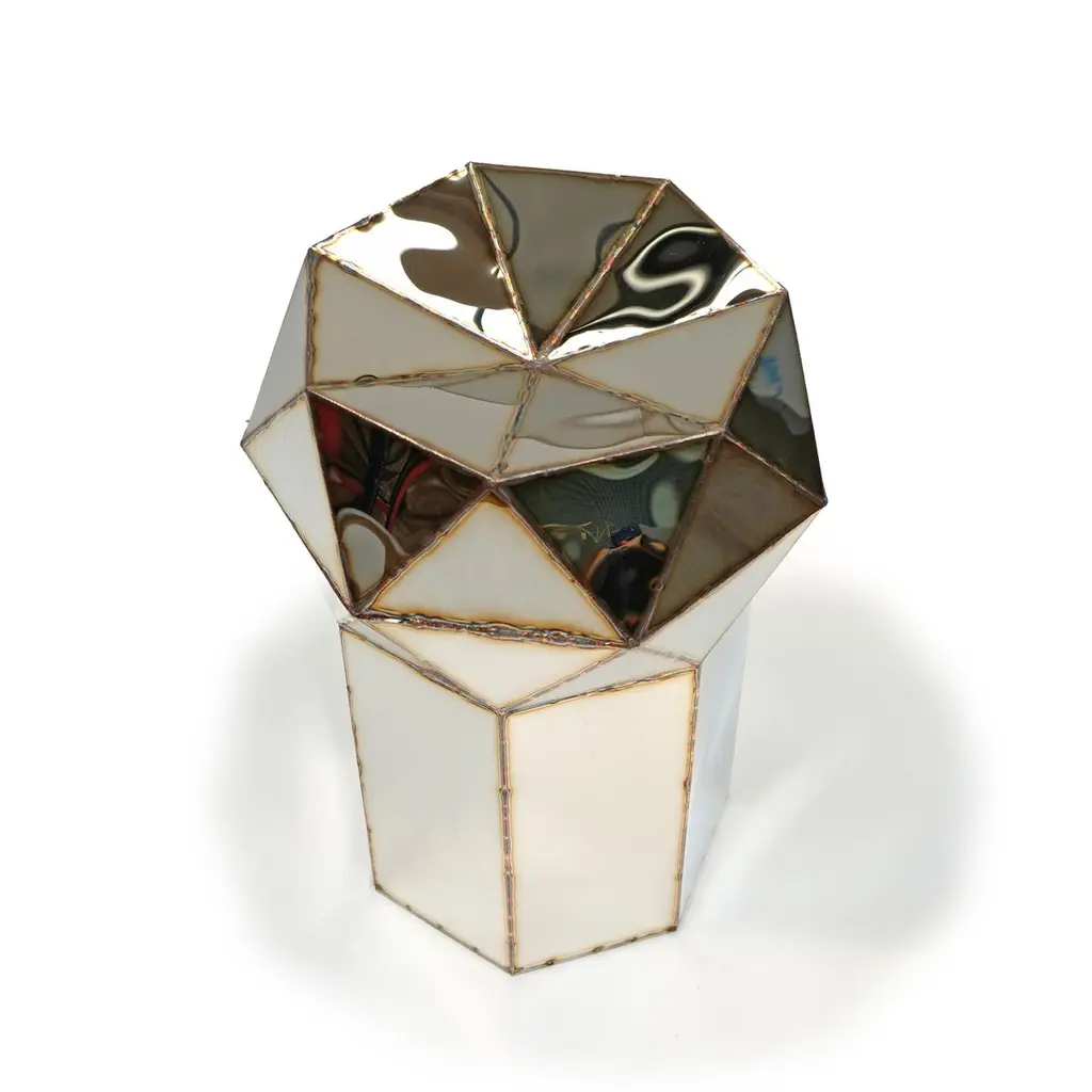 Chequer Table Base in Welded Mirror-Polished Stainless Steel by Julian MayorLimited Edition of 8 + AP.Dimensions: D 50 x W 50 x H 74 cm. Materials: Mirror-polished stainless steel.Julian Mayor is a British artist and designer renowned for his sculptural works crafted from welded sheet metal. Using high-tech design processes, the artist creates each piece digitally on a computer before building it by hand in his workshop. Born in 1976, Mayor graduated with a BA in Industrial Design from the University of Northumbria in 1998, followed by an MA from the Royal College of Art in Design Products under Ron Arad. After graduating in 2000, he moved to Northern California and worked for a design consultant agency as a product and interior designer. By 2004, Mayor returned to London to work for UK-based agencies, including Pentagram, and collaborated with British designer Tom Dixon. The artist’s work has been exhibited at the Victoria & Albert Museum, London, the Museum of Arts and Design, New York, MUDAC Lausanne, Switzerland, and the Yorkshire Sculpture Park, UK. He has installed a permanent series of sculptural benches in a park behind the Tate Britain in Pimlico, London. Mayor lives and works in Doncaster, South Yorkshire, UK.