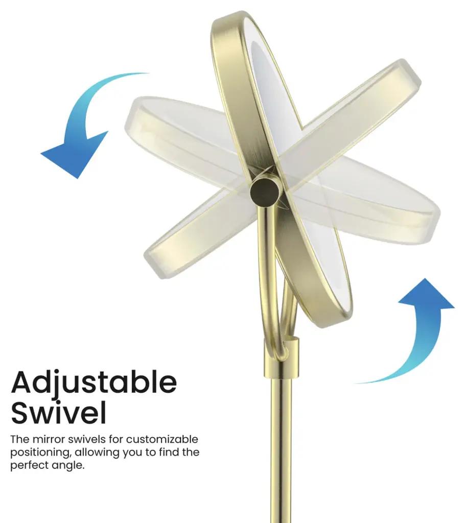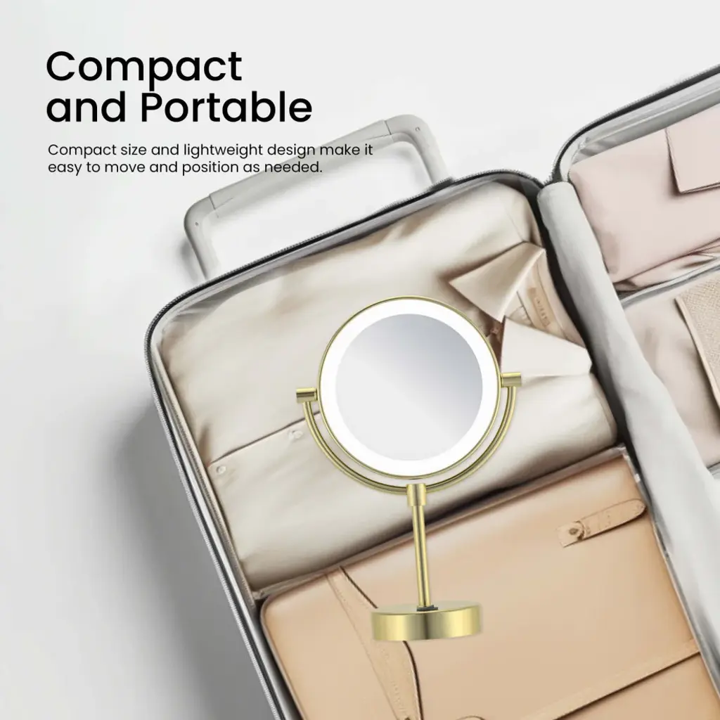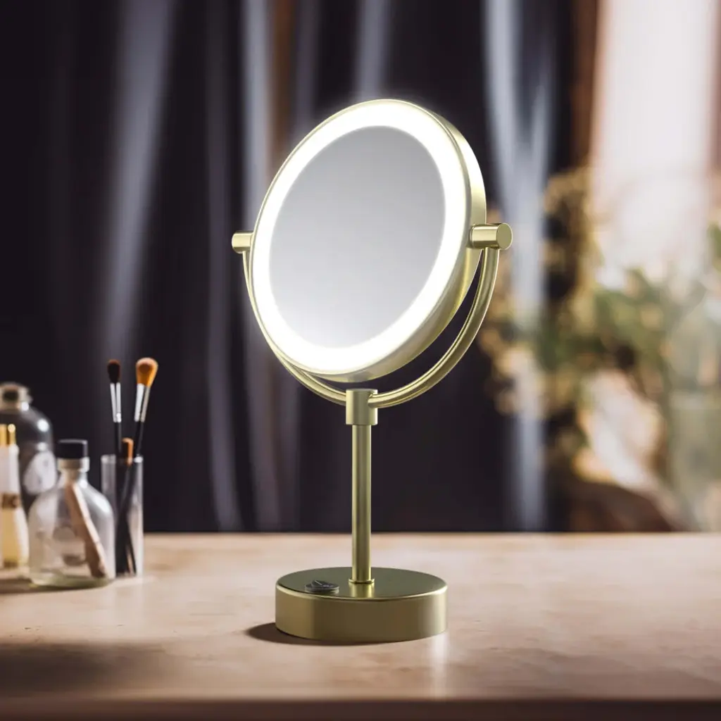 Circular Led Free Standing Magnifying Make Up Mirror, Brushed Gold