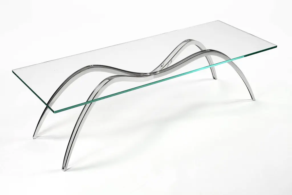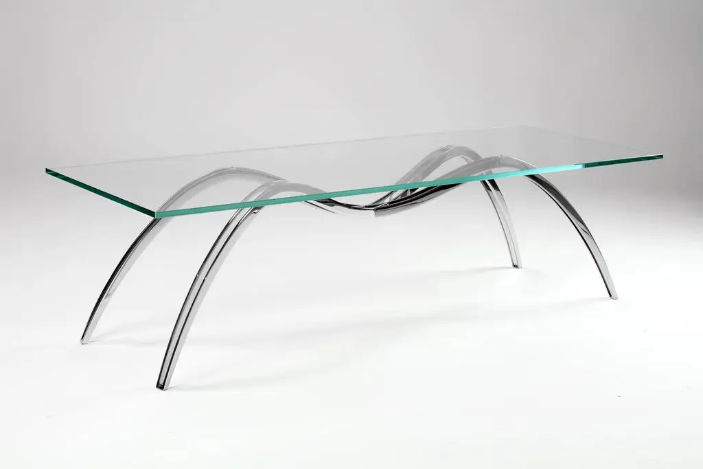 Coffee Center Table Cocktail Mirror Steel Glass Top Spider Collectible Design