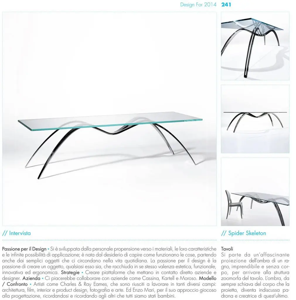 The 'Spider skeleton Junior' coffee table is made of mirror polished stainless and table top in extra clear crystal glass. Coffee table dimensions: L 135 x W 50 x H 38 cm. Dimensions are customizable.Limited Edition of 30.Each table is hand signed and numbered by the artists (engraved), 100% handmade in Italy and comes with a “Certificate of Authenticity”.A little black spider is crawling slowly and tired on an endless road of dark wood.All of a sudden it holds motionless as if to rest; there is a cold and alien light shining on the little spider projecting its shadow, paradoxically gigantic and monstrous, on to the surface of the table.The fascinating projection of the spider’s shadow gave the inspiration for this table.We started off with a shadow, uncatchable and vanishing, in order to achieve the zoomorphic structure. The shadow, ever since slave to the body which it projects, becomes the unquestioned master and creator.The artworks by Barberini & Gunnell are regularly shown at international art fairs, such as PAD London, PAD Genève, PAD Monaco, Salon Art + Design New York, ArtMiami.IMPORTANT INFORMATION REGARDING SHIPPING:Please contact us for an independent shipping quote as we provide high quality shipping at competitive prices due to our frequency of shipping, relations with international shipping companies and the possibility to organize directly from Italy.We take care of the entire customs procedure and paperwork. On request we organize a white glove delivery and installation of the artwork inside of the property of the client. All shipments are ALL-RISK insured.We carefully pack all artworks in strong wooden crates to ensure safe transport. This service is done directly in our atelier and is complimentary. All of our artworks travel with a shock watch system in order to monitorate rough handling by shippers and movers.