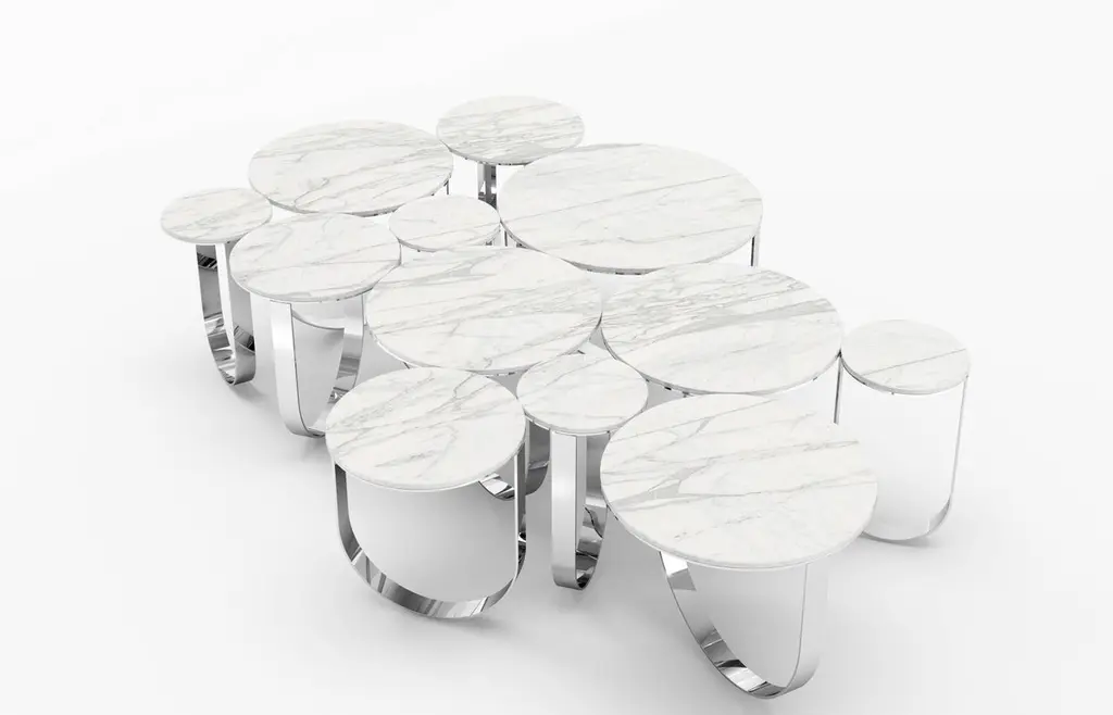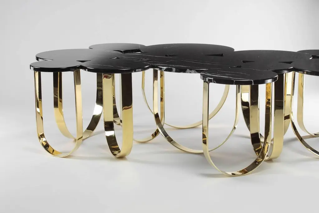 The 'Cloud' is a spectacular coffee table with structure in mirror polished stainless steel and top in statuary marble (origin: Tuscany). The mirror-like finishing of the stainless steel creates different perceptions of this particular material and allows interesting reflections of light. Coffee table dimension: L 163 x W 107 x H 44cm. Limited Edition of 25. Each table is hand signed and numbered by the artists (engraved), 100% handmade in Italy and comes with a “Certificate of Authenticity”.We wanted to kidnap a cloud, slice it into thin sheets like it's done with blocks of marble.After, we take the central slab with the most beautiful pattern.To keep the cloud from escaping, we tied it on to weights, disguising them as light, golden legs.Now, that the cloud is fixed to the ground forever we dressed her in the colour of Marquina marble which rested for millennia in the depth of heavy mountains.The cloud has become a table and nobody will ever unmask it.The artworks by Barberini & Gunnell are regularly shown at international art fairs, such as PAD London, PAD Genève, PAD Monaco, Salon Art and Design New York, ArtMiami.IMPORTANT INFORMATION REGARDING SHIPPING:Please contact us for an independent shipping quote as we provide high quality shipping at competitive prices due to our frequency of shipping, relations with international shipping companies and the possibility to organize directly from Italy.We take care of the entire customs procedure and paperwork. On request we organize a white glove delivery and installation of the artwork inside of the property of the client. All shipments are ALL-RISK insured.We carefully pack all artworks in strong wooden crates to ensure safe transport. This service is done directly in our atelier and is complimentary. All of our artworks travel with a shock watch system in order to monitorate rough handling by shippers and movers.
