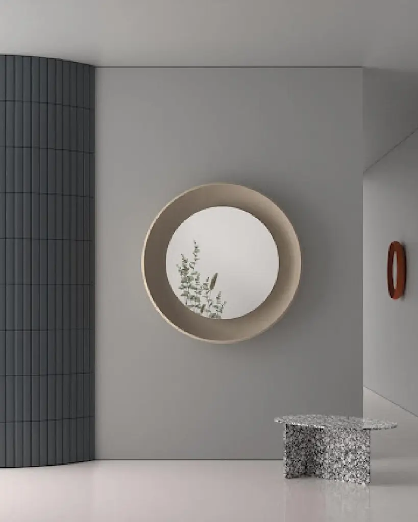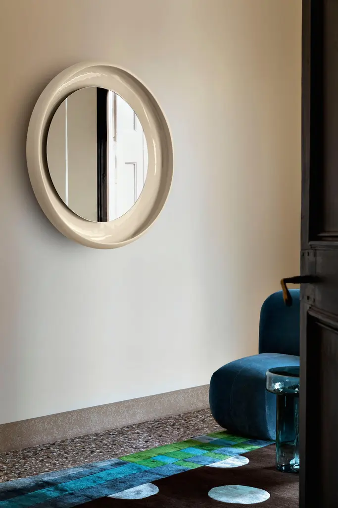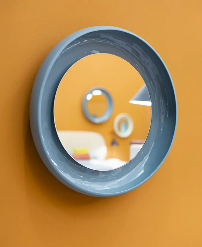 Coque has a taste for dynamic, rich contrasts. The mirror is protected by a ceramic shell, which embraces two opposing finishes: glossy and matt. The inner surface is enamelled and shiny, while the outer skin is textured. The mirror is transformed into a precious object that accentuates the natural materials, with reflections that reverberate and add depth to the living space.Design as a second life. After studying Political Sciences and Marketing Management, Alain Gilles went on to work in the international financial world for 5 years. But one has to live his own life. So, thanks to the moral support of his wife, he went back to studying Industrial design in France. He opened his own studio in late 2007 in order to pursue his own dreams and develop his personal approach to product design, furniture design, art direction and scenography. He has since started to collaborate with several international editors such as Qui est Paul ?, Galerie Gosserez Paris, Magnitude, O’Sun, La Chance, Evolution, Buzzispace, Casamania and Bonaldo. Several of his products have been awarded international prices, such as the Henry Van De Velde Label, the Design for Asia Golden Award, The “Red Dot Best of the Best” for the Welded table and the Good Design award for the Big Table. In 2012, he was named “Designer of the Year” by the prestigious Interieur Kortrijk Fair.Available in different options:Finish:• Crema Glazed Ceramic • Peltro Glazed Ceramic• Terracotta Glazed CeramicDIMENSIONS:Small: Ø65x10 (mirror Ø45) cmMedium: ØØ100x13 (mirror Ø72) cm