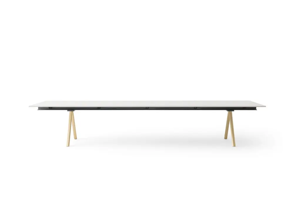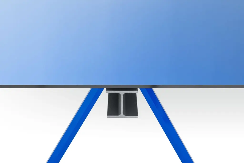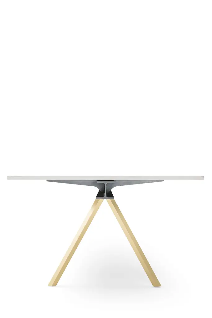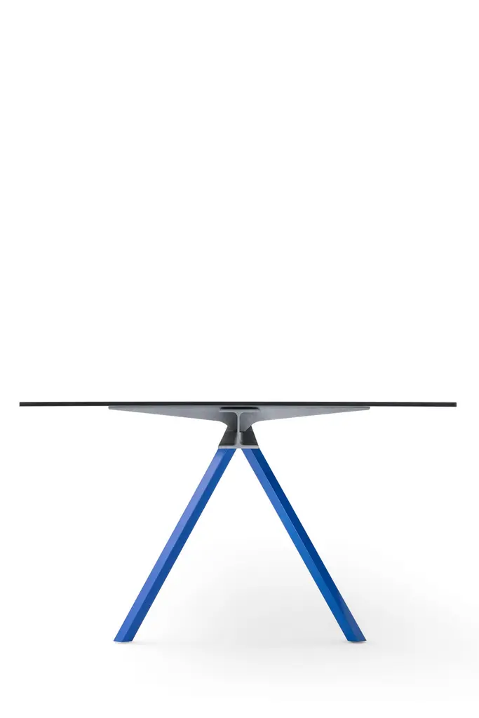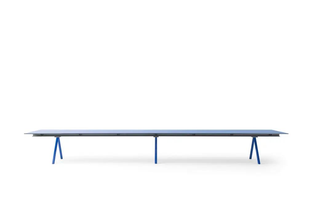 A table with a strongly industrial look signed by Francesco Rota is added to the wide collection of Desalto tables. The strong character and generous dimensions make it particularly suitable for contract projects or for homes with an international and metropolitan feel. Table with a high-strength steel supporting beam with an H-shaped profile lacquered in micaceous iron.Legs with steel structure covered with a hexagonal section brass tube cover, also available with ash slab coating.Supports for the top in lasered steel tube, welded to the beam.Top in toughened mirrored glass 12 mm thick.Round version available.Lacquered legs: Legs in Desalto exclusive finishes:• B59 matt black • A01 glossy gold• B62 matt white • A03 chrome• B93 blu oltremare matt • A18 ossidiana matt• B94 blu cobalto matt • A28 brushed natural brass• B95 blu oceano matt • A29 brushed nikel• K93 blu oltremare glossy• K94 blu cobalto glossy• K95 blu ocenao glossyLegs covered in ash:• C01 natural ash• C02 ash moro• C03 ash grafiteMirror Top:• E33 mirror blu oltremare• E19 mirror grey EuropaDifferent top finishes available: Concrete, Ash, Laminate.Available in different options, please inquire with usDIMENSIONS:Sizes:100 x 200 cm100 x 250 cm100 x 300 cm108 x 350 cm108 x 400 cm108 x 500 cm108 x 600 cmHight:h. 73 cmDifferent configurations available, please inquire with usPrice refers to the 100 x 250 cm in E33 mirror blu oltremare Top.